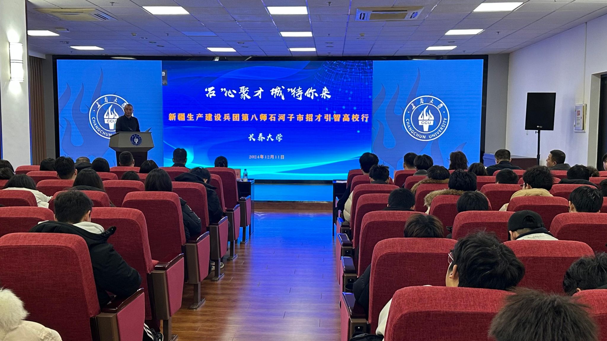 12月11日,新疆生产建设兵团第八师石河子市招才引智专场推介会在我校举行。八师石河子市党委常委、副政委、组织部部长李平,八师石河子市人力资源和社会保障局党组书记、局长李海,八师石河子市党委组织部副部长边升,学校党委副书记王剑飞出席推介会。