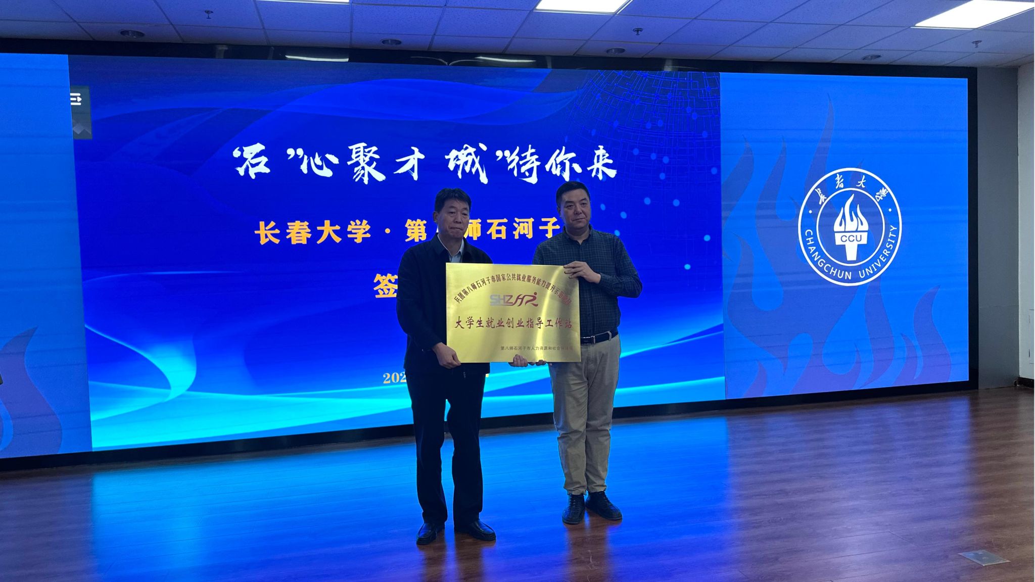 双方举行了校地合作签约仪式,石河子市向学校进行“大学生就业创业指导工作站”授牌。李海和边升分别向参加推介会的180余名学生介绍了石河子市企事业单位招聘岗位需求及就业创业政策、人才引进政策。我校2005届毕业生、石河子第二高级中学高级教师冯键进行了校友推介。新疆生产建设兵团第八师天山铝业有限公司、新疆国化材料科技有限公司等8家企事业单位进行了线上直播带岗。