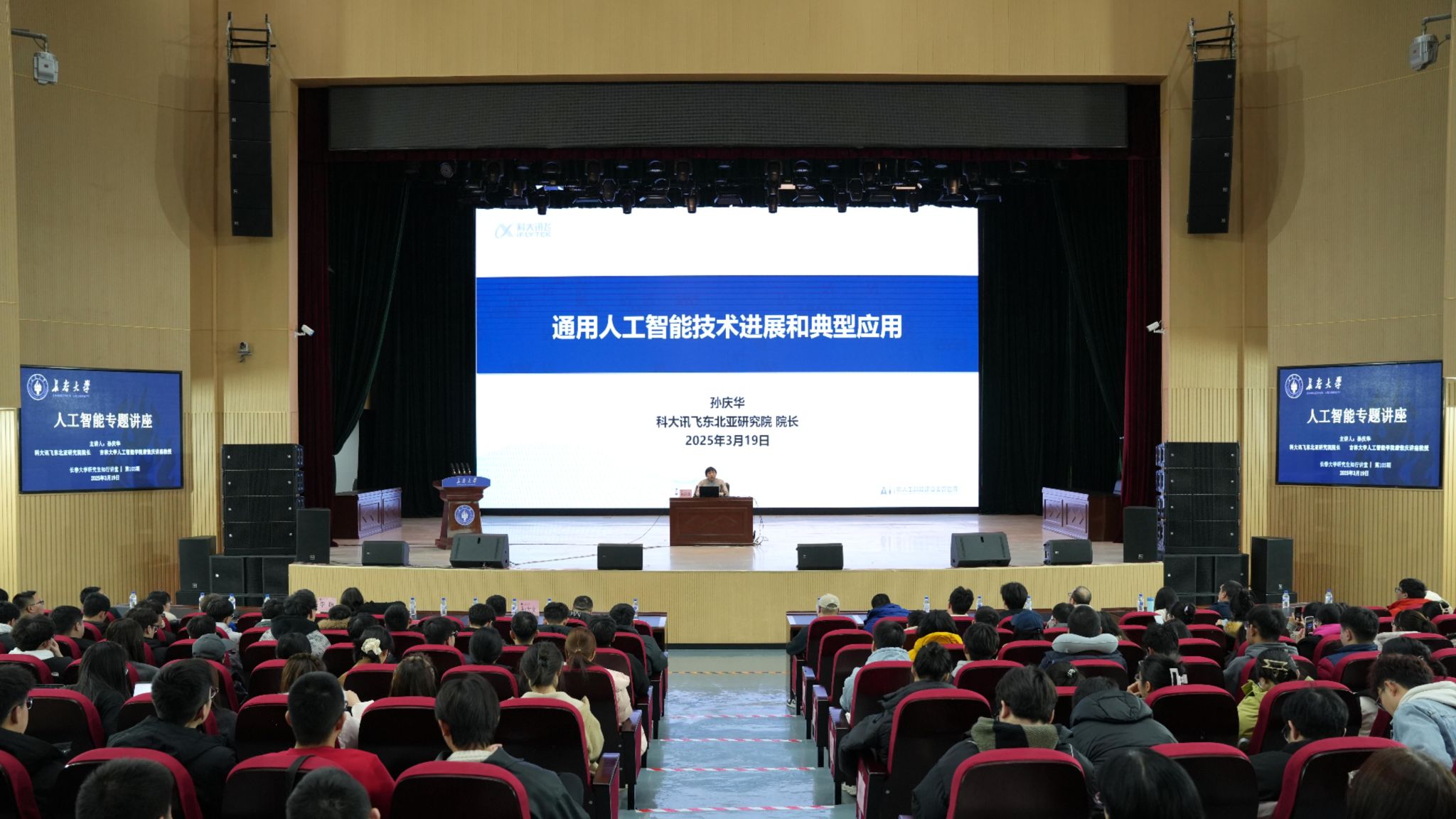 为深入学习贯彻党的二十届三中全会和全国教育大会精神,落实国家教育数字化战略行动,全面提升研究生和导师人工智能素养,3月19日,学校举办“人工智能”首场专题讲座,邀请科大讯飞东北亚研究院院长、吉林大学人工智能学院“唐敖庆讲座教授”孙庆华作了题为《通用人工智能技术进展和典型应用》专题报告,在校研究生及导师千余人通过线上线下方式收看讲座。副校长孙大文出席会议,会议由研究生院院长李萌主持。