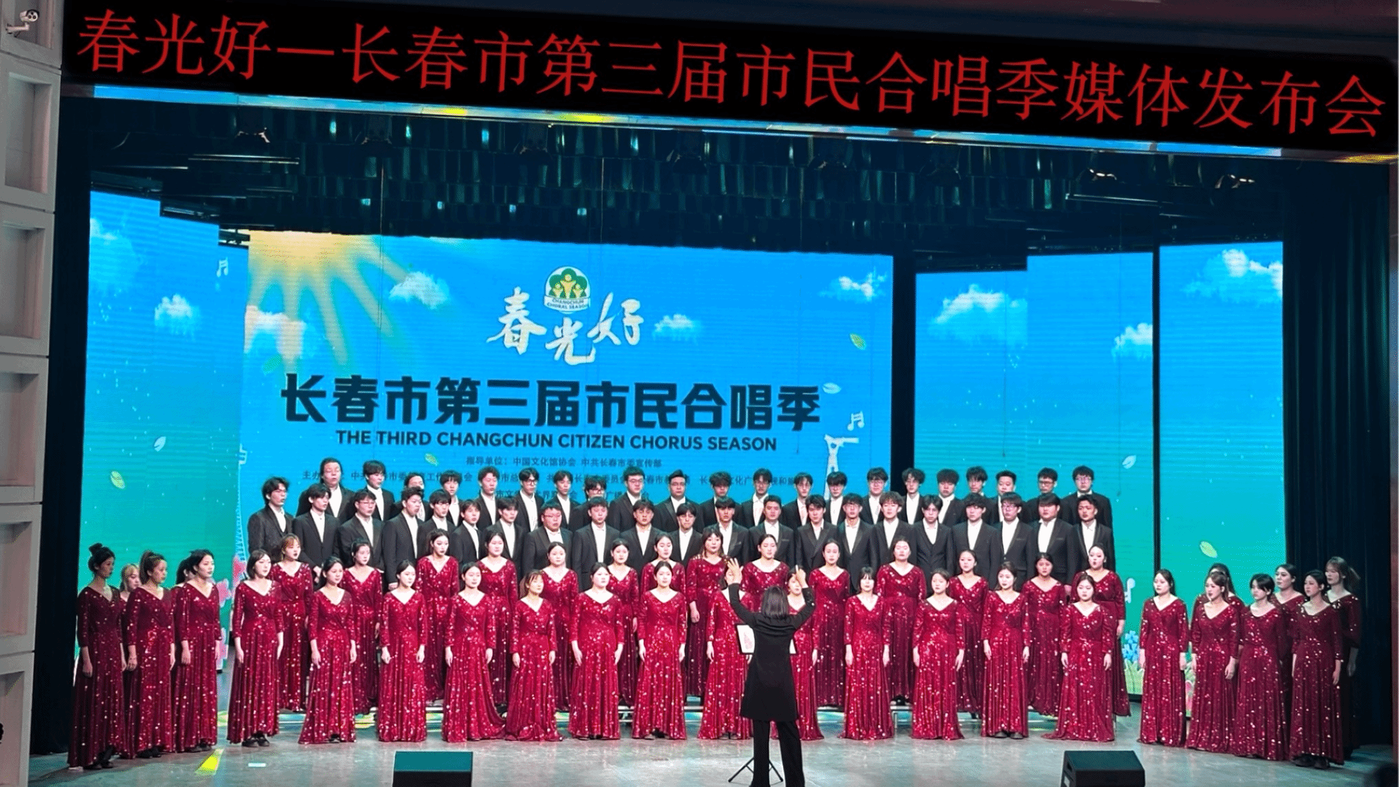 活动由中共长春市委教育工作委员会、长春市总工会、共青团长春市委员会、长春市教育局、长春市文化广播电视和旅游局、长春市文学艺术界联合会和长春广播电视台共同主办,旨在通过歌声凝聚城市精神力量,开启长春文旅春季系列活动文化序章。我校学生合唱团丰富的和声层次与细腻的声音处理,展现了蒙古族音乐特质,凸显了合唱团的专业实力,赢得现场观众一致好评。
