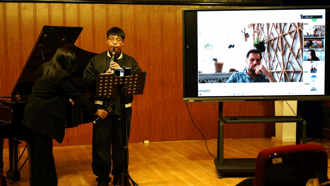 活动特邀意大利佩萨罗音乐学院首席钢琴教授、钢琴系主任Carlo Pari,大提琴教授、首席研究生导师Claudio Casadei开展云端交流指导,对声乐、器乐专业学生的现场表演从气息控制、触键层次处理等专业维度进行指导,并结合意大利传统音乐美学理念提出改进建议。互动答疑环节,师生们围绕艺术表现、国际赛事准备等问题展开激烈讨论。