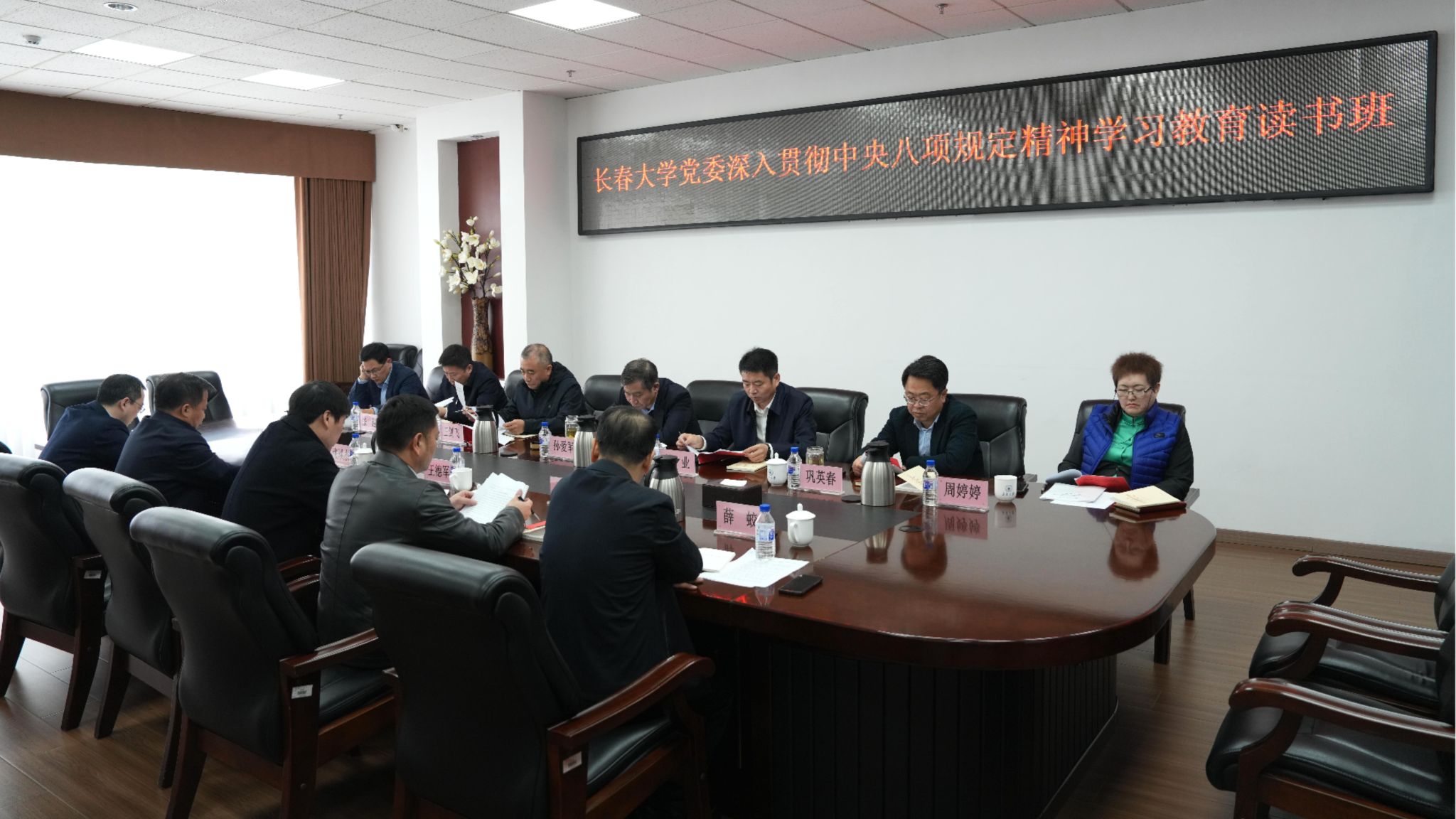 4月14日,学校党委举办第三期深入贯彻中央八项规定精神学习教育读书班。学校党委书记孙爱军主持会议。学校领导班子学习教育读书班成员参加会议。