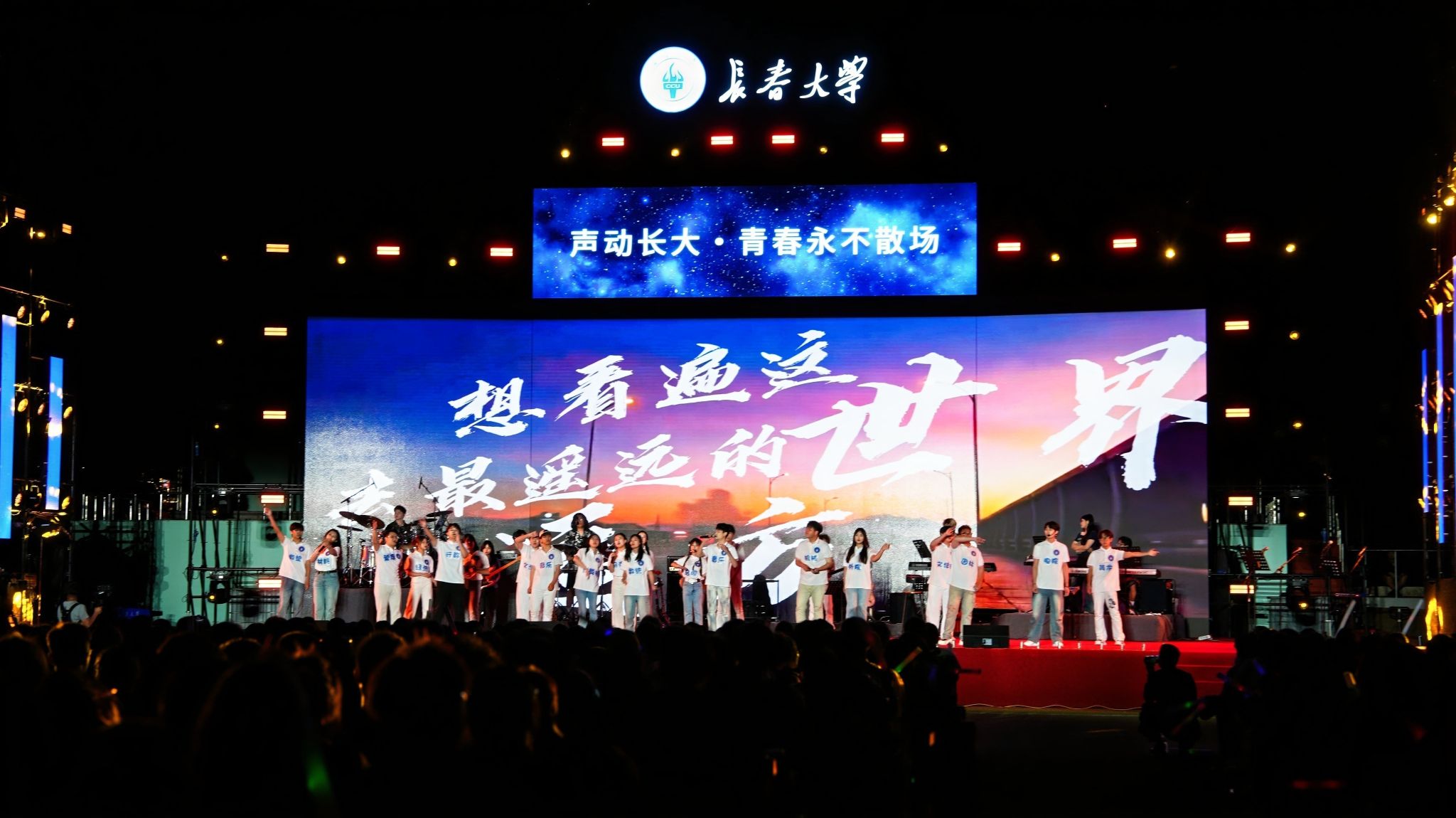 全体师生演职人员以“乐队伴奏+现场演绎”的形式,串联起一首首承载校园记忆的旋律,为毕业生献上了一场声情并茂的文艺演出。当歌曲《海阔天空》的旋律响彻会场,全场师生齐声合唱,激昂的声浪汇成对毕业生的真挚祝福。