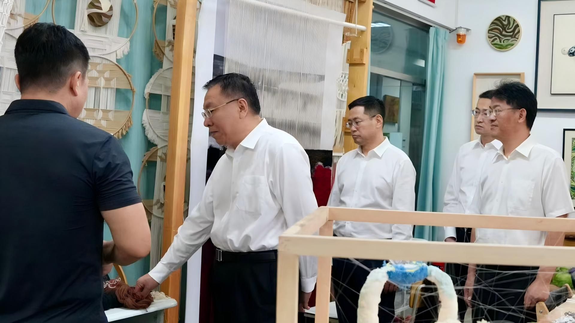 在特殊教育学院,郭灵计查看了孤独症融合康复研究中心、纤维艺术工作室,深入调研学校残疾大学生人才培养和省部共建进展情况。