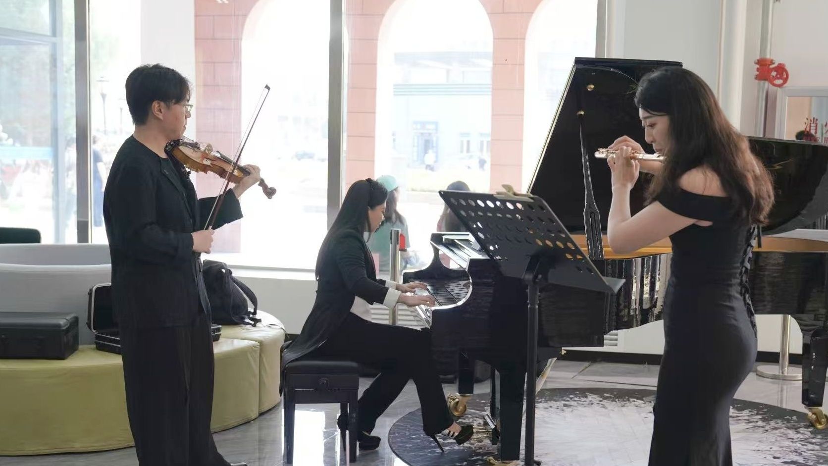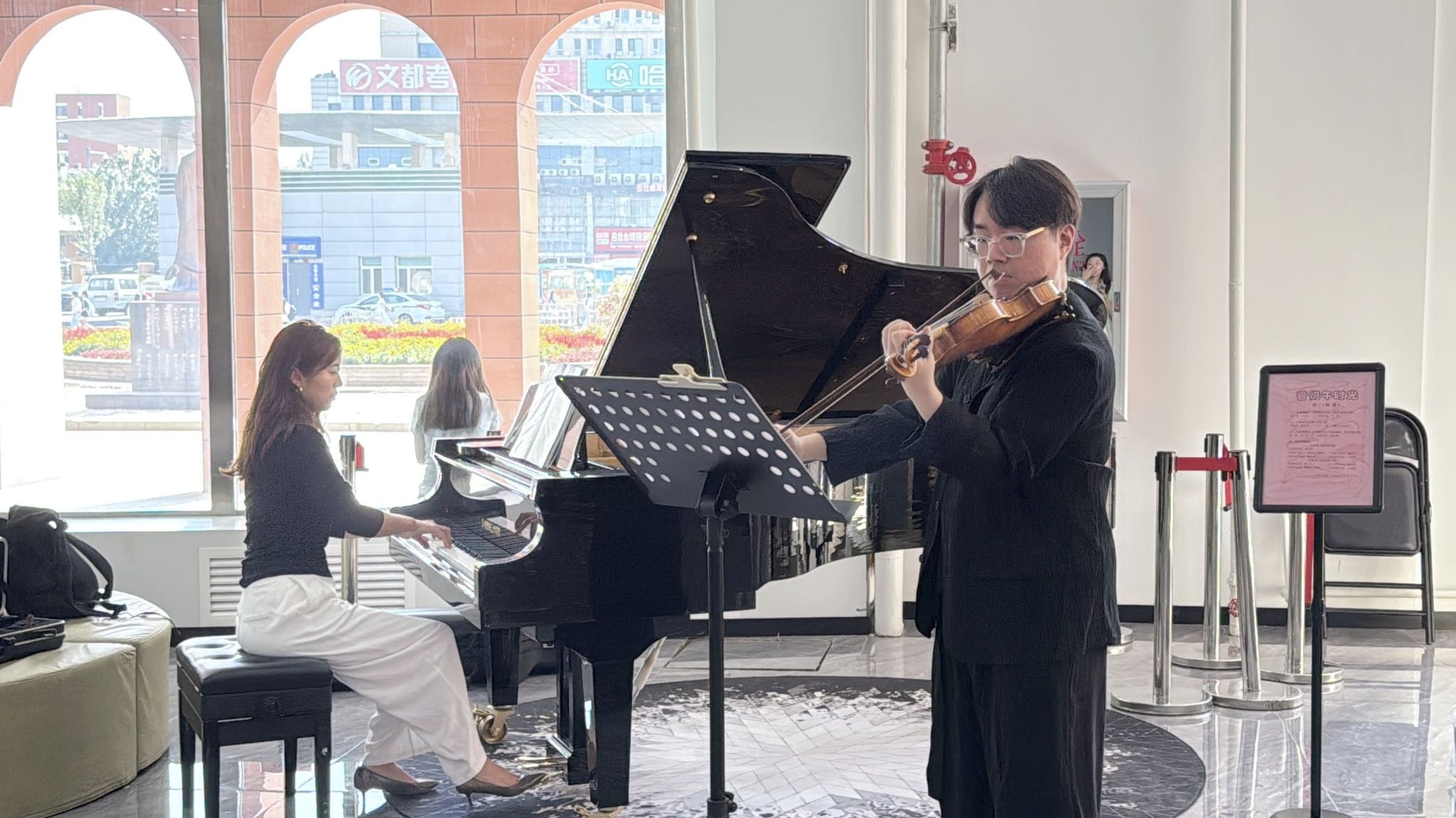 9月4日中午,音乐学院为纪念中国人民抗日战争暨世界反法西斯战争胜利80周年,精心打造“音悦午时光”专场演出。本期“音悦午时光”演奏《游击队歌》《红色娘子军》《灯火里的中国》《十送红军》《太阳最红,毛主席最亲》《月宫》等曲目,以音乐回顾峥嵘岁月,用旋律传递家国情怀。演奏过程中,吸引了众多师生驻足聆听。