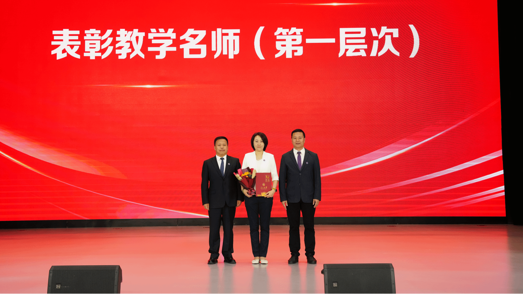 副校长张洪杰、校长助理刘磊安为教学名师(第一层次)获得者颁奖。