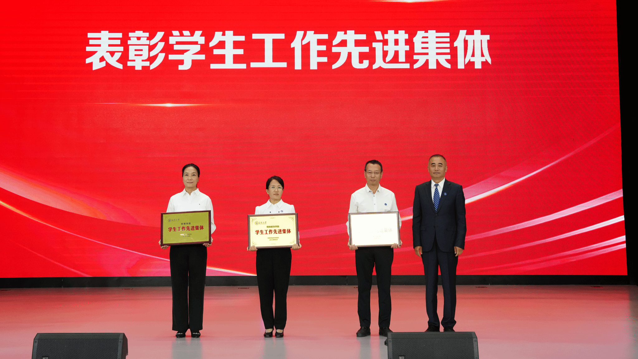 党委副书记王剑飞为学生工作先进集体获奖代表颁发荣誉奖牌。