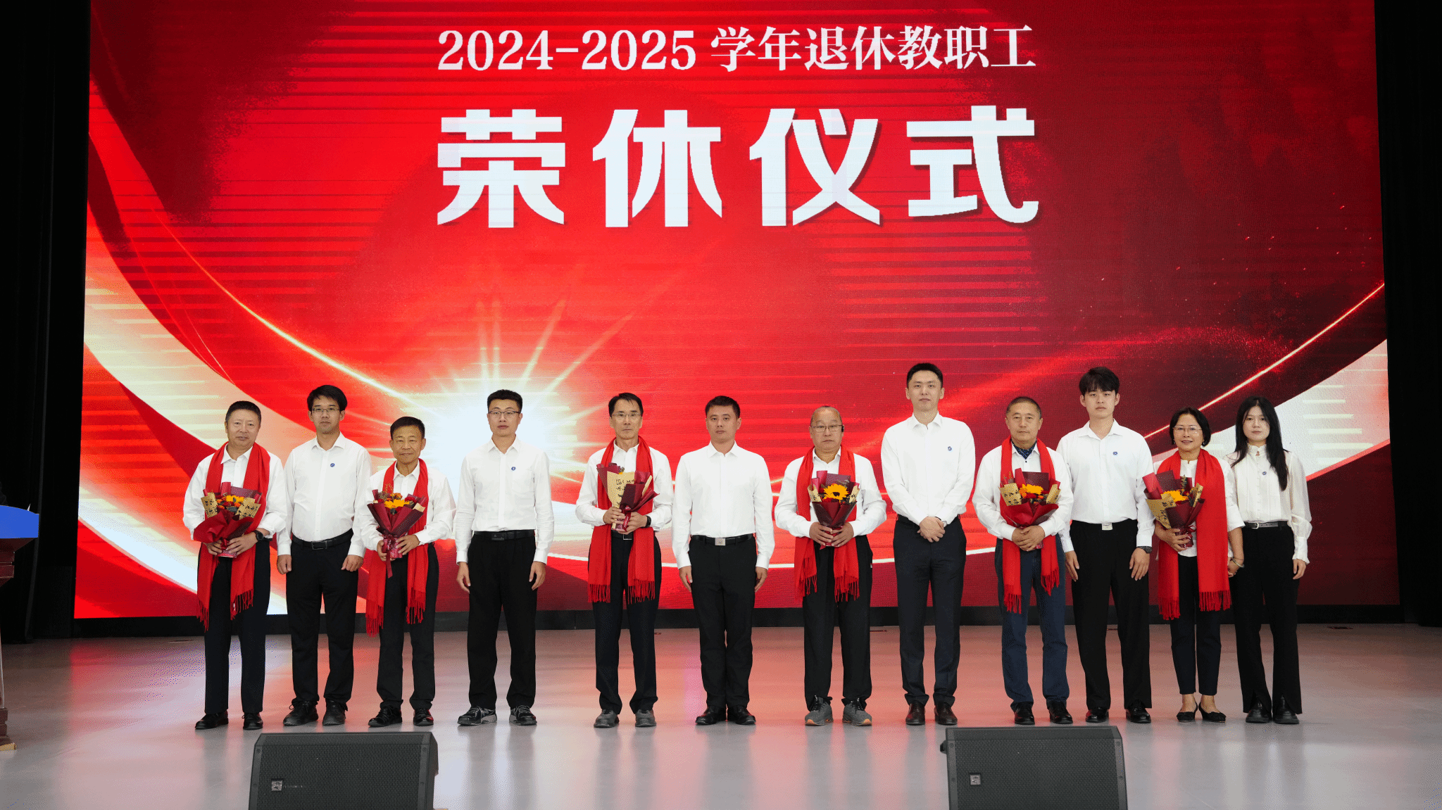荣休教师是学校发展的宝贵财富。大会为退休教职工举行荣休仪式,新入职教师代表向荣休教职工代表献花,荣休教师则为新教师代表佩戴校徽,象征使命与精神的传承。