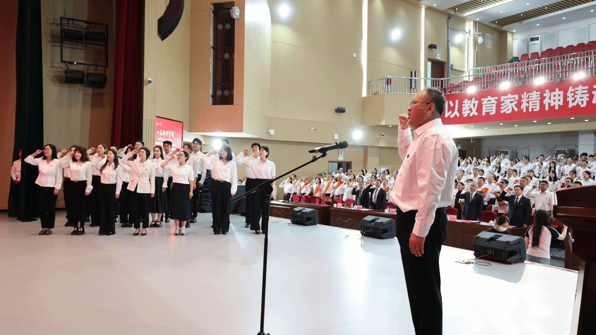 会上举行了2024—2025学年新晋教师宣誓仪式。仪式由省级教学名师、机械与车辆工程学院院长李庆华教授领誓,新入职教师与参会教师共同重温人民教师誓词。