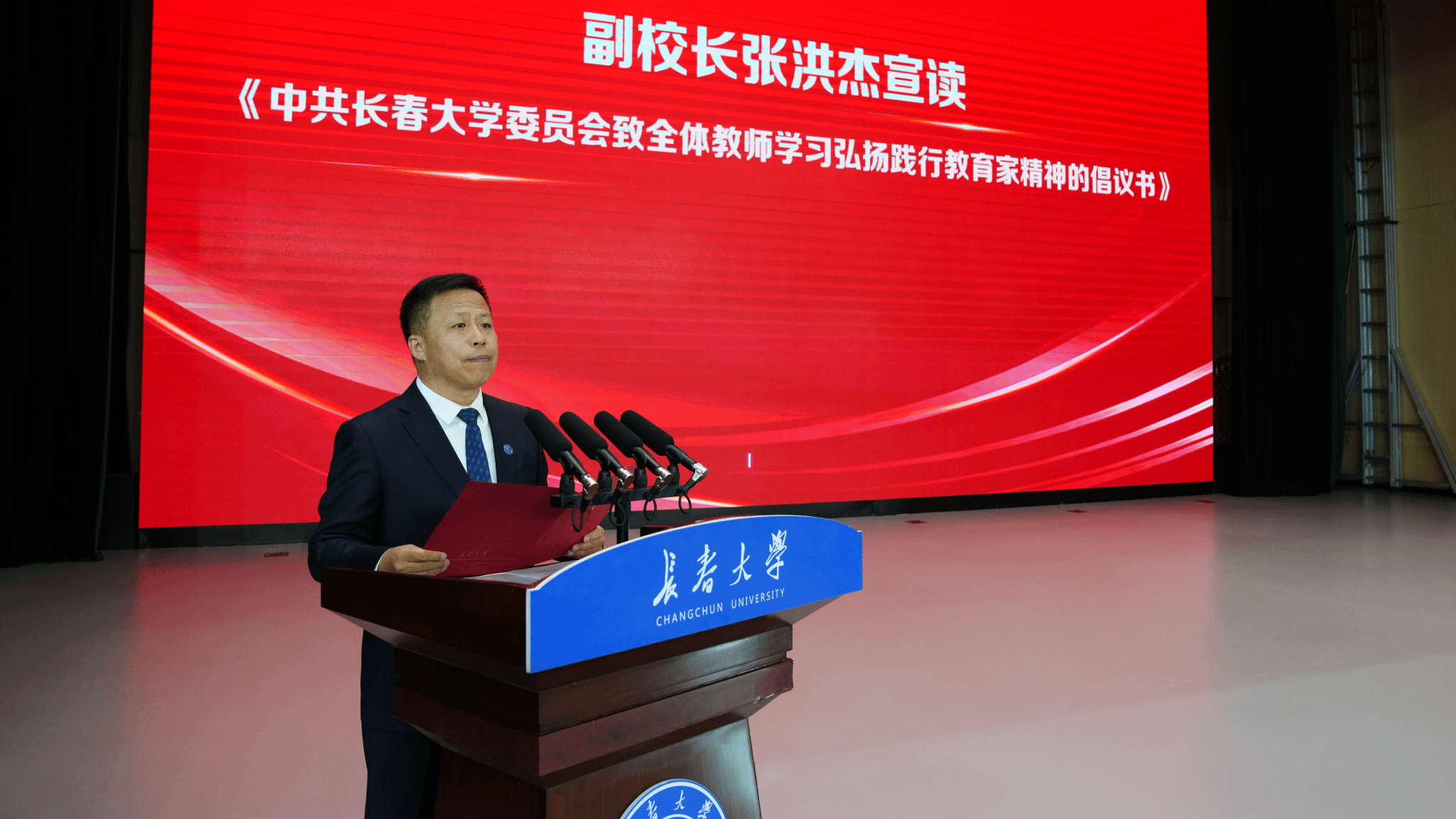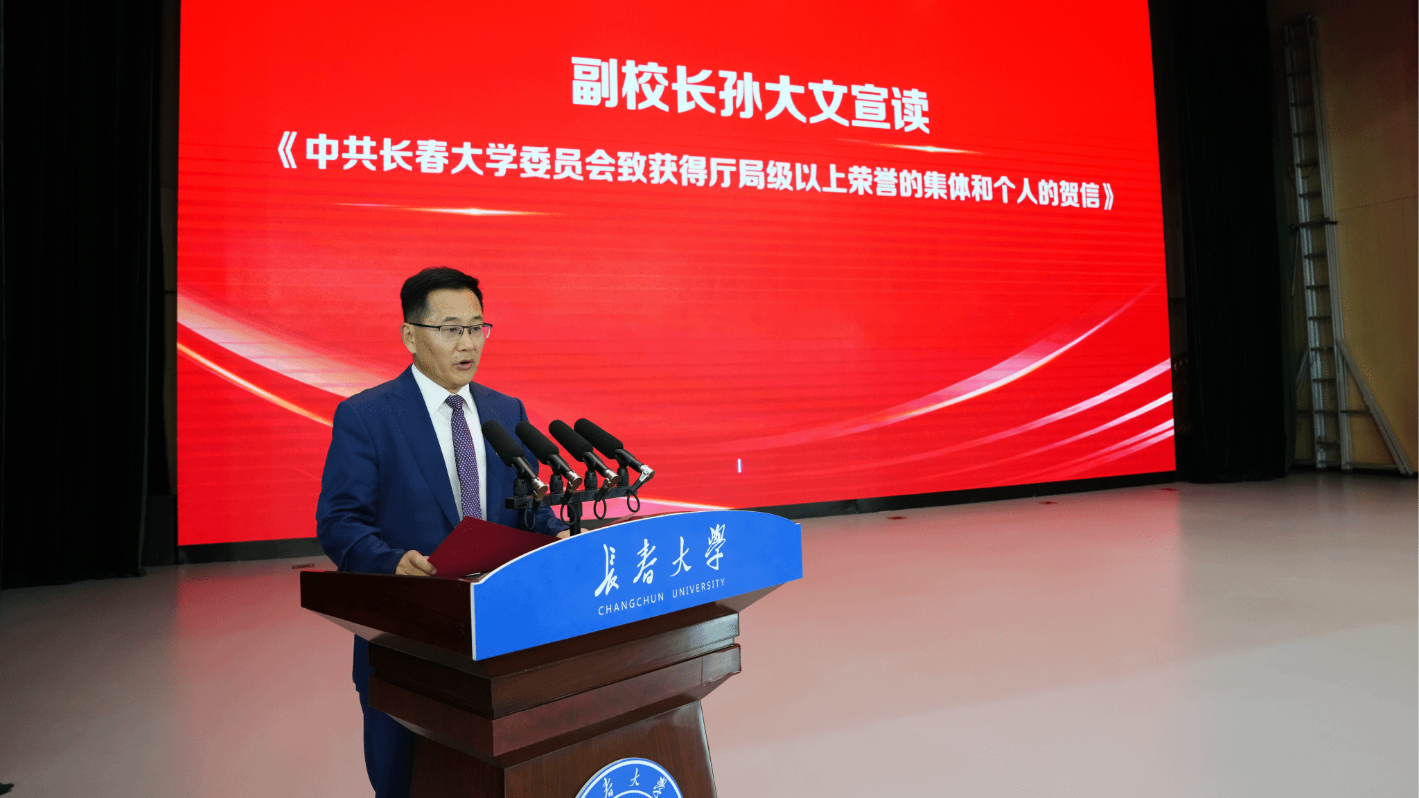 在庄严的国歌声中,大会正式拉开帷幕。副校长张洪杰宣读了《中共长春大学委员会致全体教师学习弘扬践行教育家精神的倡议书》;副校长孙大文宣读了《中共长春大学委员会致获得厅局级以上荣誉集体和个人的贺信》;巩英春宣读了《中共长春大学委员会关于表彰2024—2025学年先进集体和优秀个人的决定》。