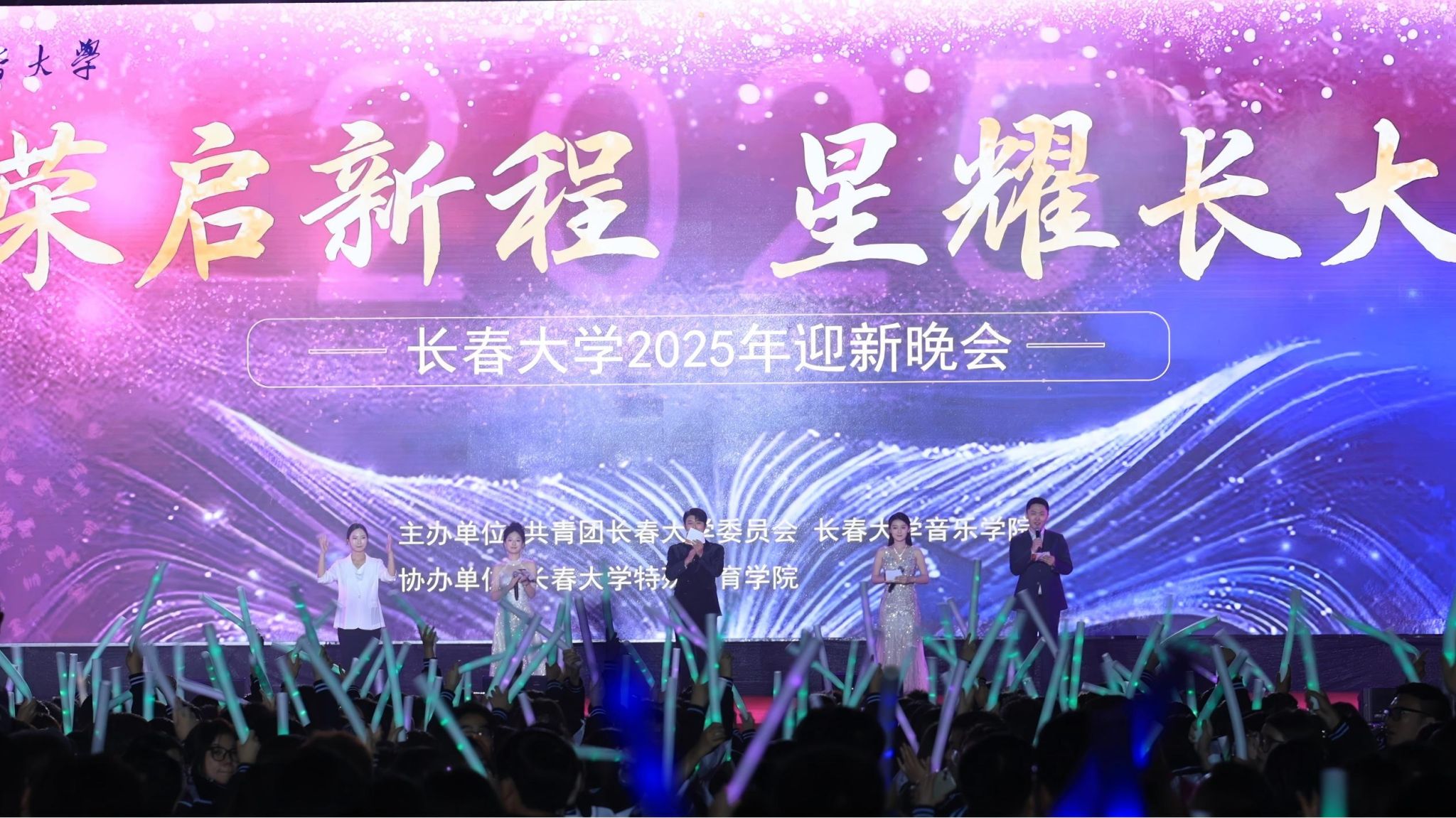 9月9日,“荣启新程,星耀长大”长春大学2025年迎新晚会在学校运动场举行。晚会由学校团委、音乐学院主办,特殊教育学院协办。