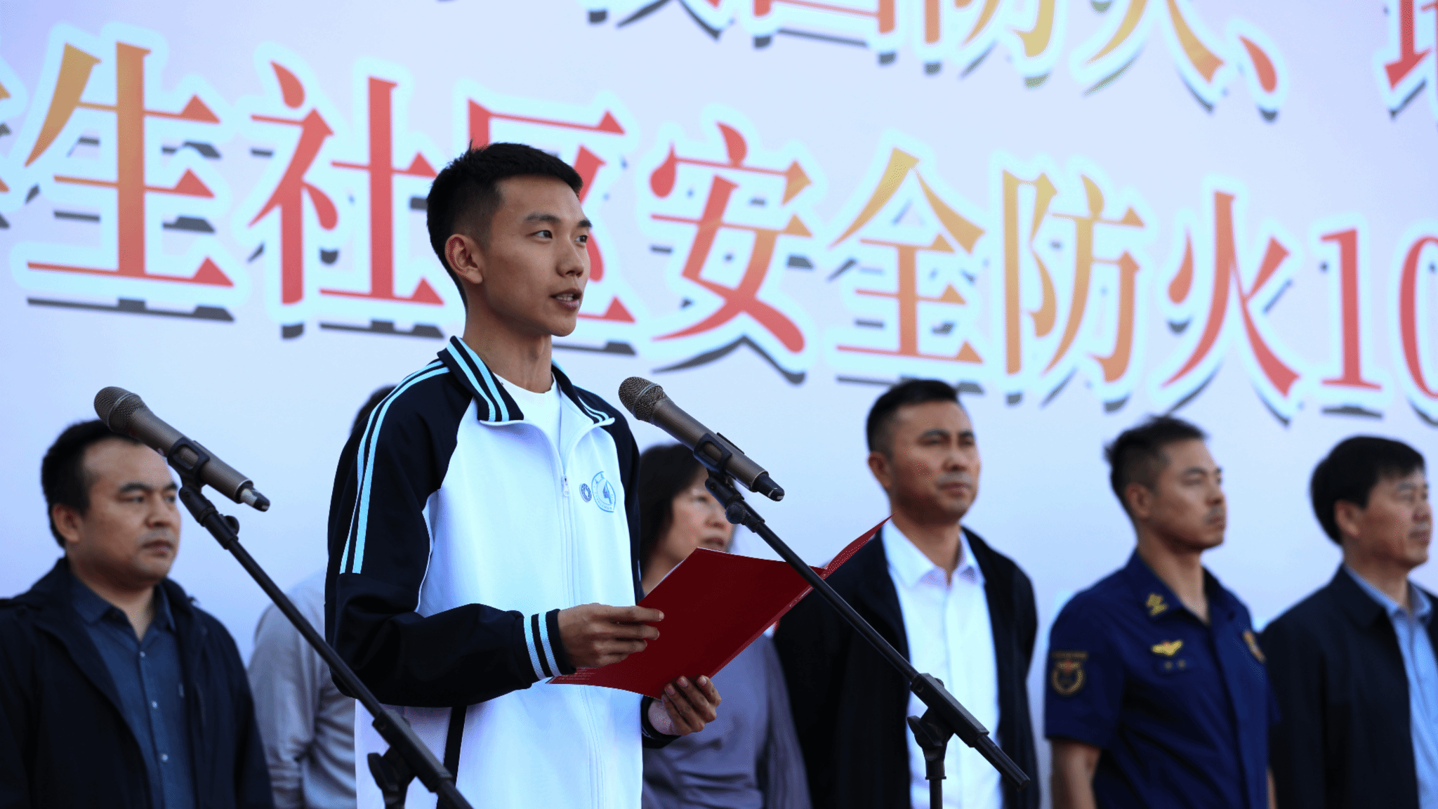 学生代表、机械与车辆工程学院学生刘振渤在发言中号召同学们作为公寓共治共建的参与者,积极投身安全防火100天活动,将安全意识“铭记于心、付诸于行”,共同为筑牢校园安全防线贡献力量。