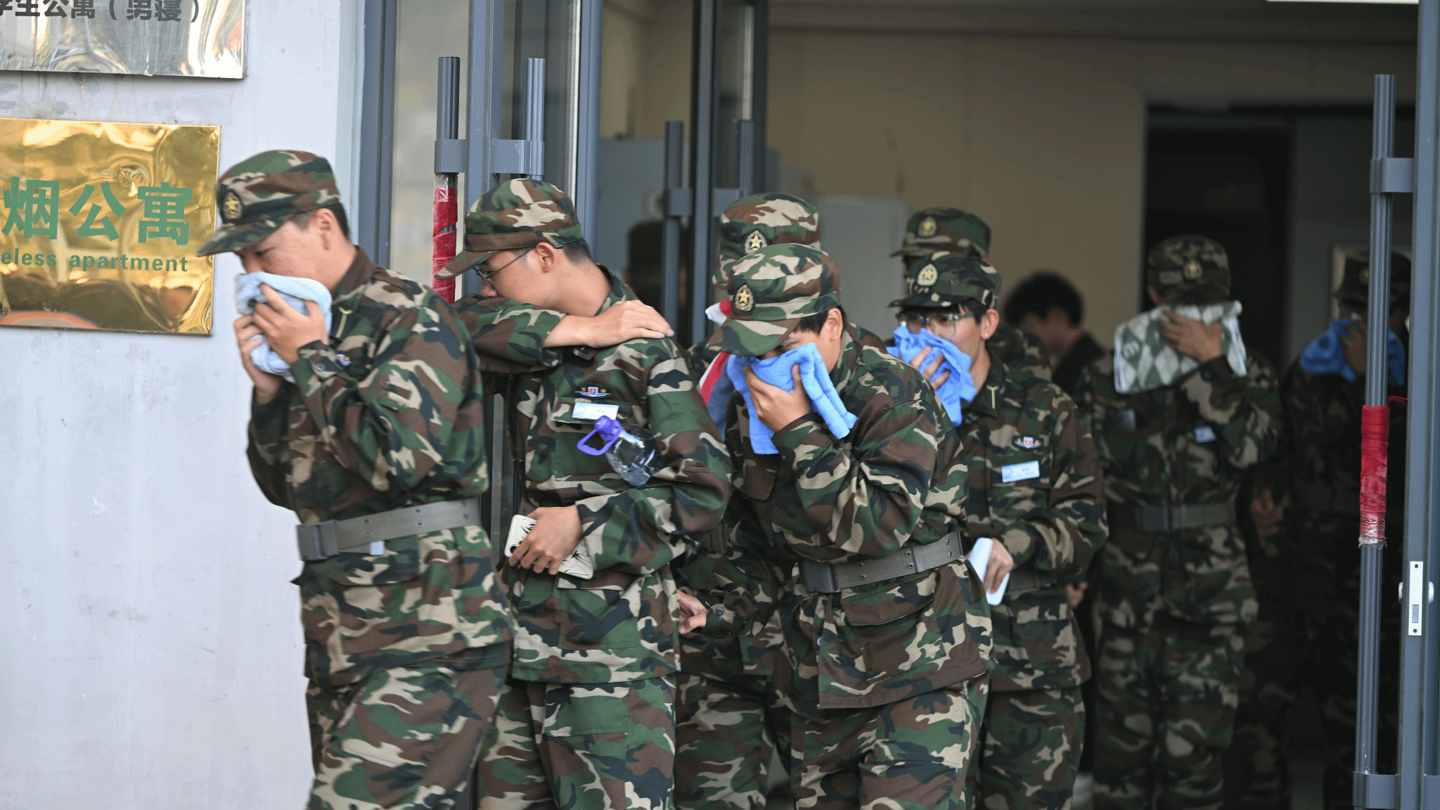 此次演练以学生第九公寓为起火点,模拟火灾事故现场进行灭火疏散逃生演练。随着演练信号声响起,楼内师生按照疏散演练预案要求迅速撤离,并按指定路线在最短时间内安全、快速、有序地撤离到安全地带。