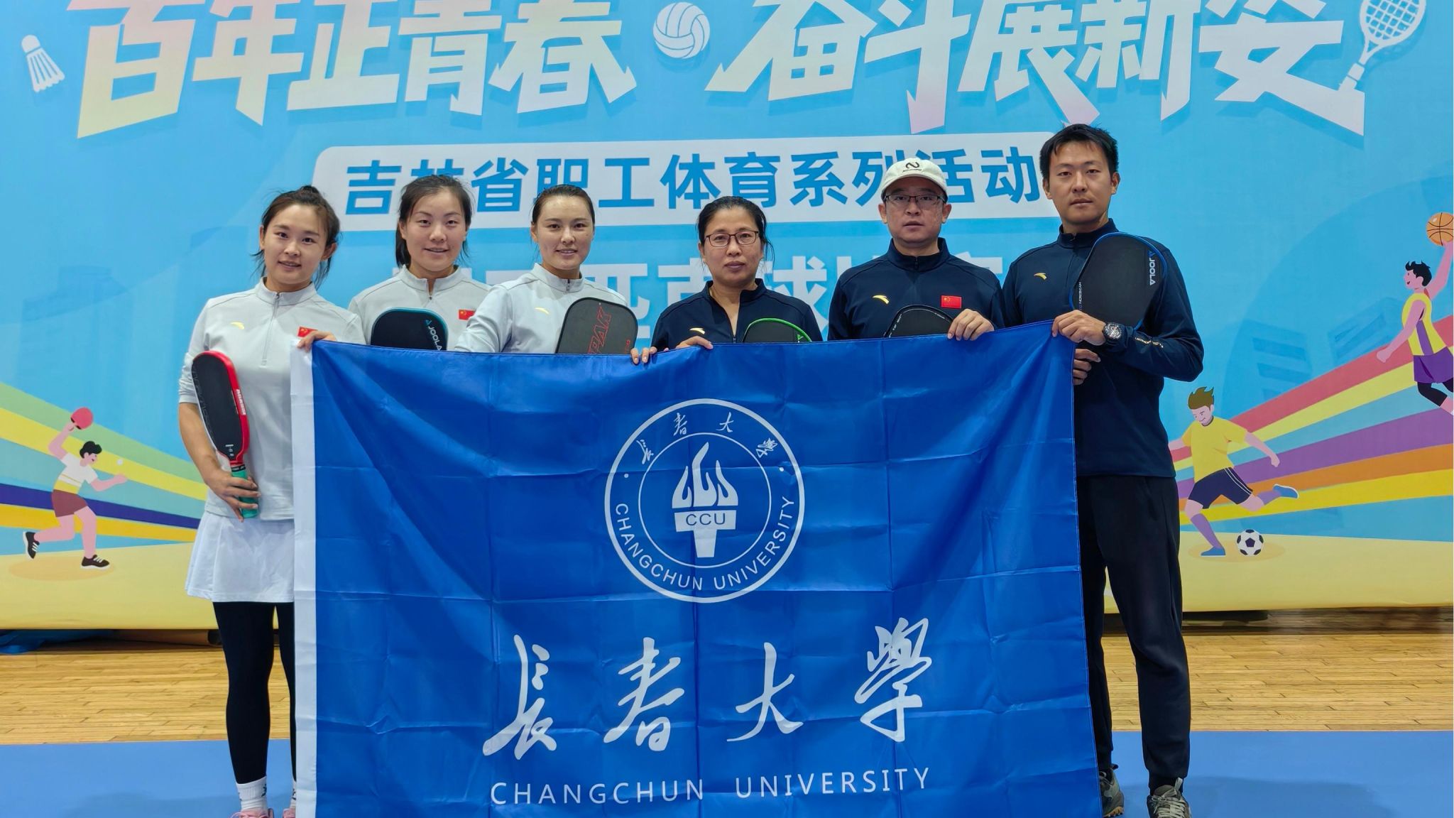 10月17日—18日,由吉林省总工会、吉林省体育局主办,匹克球吉林科技发展有限公司承办的2025年吉林省职工匹克球比赛在长春市篮城体育匹克球场举行,我校工会派出6名体育学院教师参加了全部5个项目的比赛。