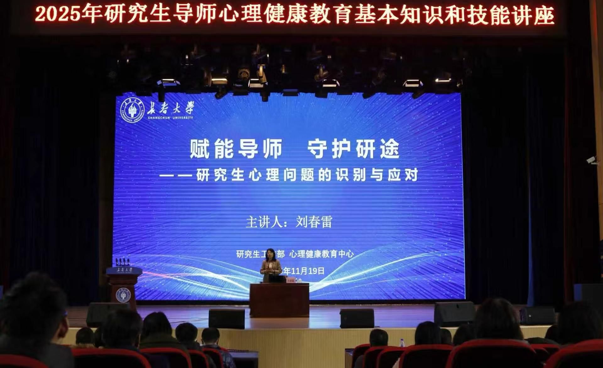 为了深入贯彻落实立德树人根本任务,加强研究生导师队伍建设,提升导师心理育人素养,促进研究生全面成长成才,11月19日下午,研究生工作部与心理健康教育中心联合举办2025年研究生导师心理健康教育基本知识和技能讲座,邀请省内心理健康教育专家刘春雷教授作了题为《赋能导师 守护研途——研究生心理问题的识别与应对》的专题报告。