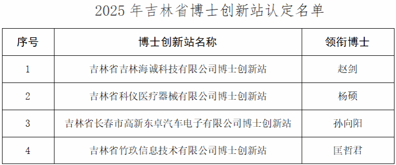 近日,吉林省科学技术协会公布了2025年吉林省博士创新站申报认定结果,我校计算机科学技术学院教师赵剑、匡哲君,材料科学与工程学院教师杨硕,电子信息工程学院教师孙向阳,作为领衔博士及其团队联合企业申报的4个吉林省博士创新站成功获批,标志着我校在科研创新和服务地方经济发展方面取得重要突破。