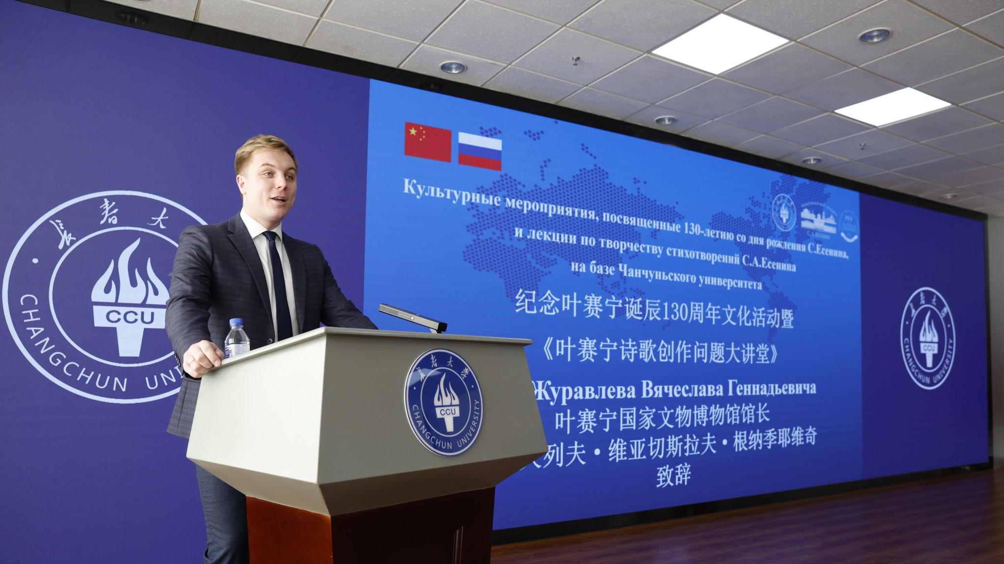 11月25日至27日,学校联合叶赛宁国家博物馆与叶赛宁梁赞国立大学举办纪念叶赛宁诞辰130周年文化活动暨《叶赛宁诗歌创作问题大讲堂》。叶赛宁国家博物馆馆长茹拉夫廖夫·维亚切斯拉夫·根纳基耶维奇、叶赛宁梁赞国立大学校长博科夫·德米特里·亚历山德罗维奇、校长韩业出席活动。