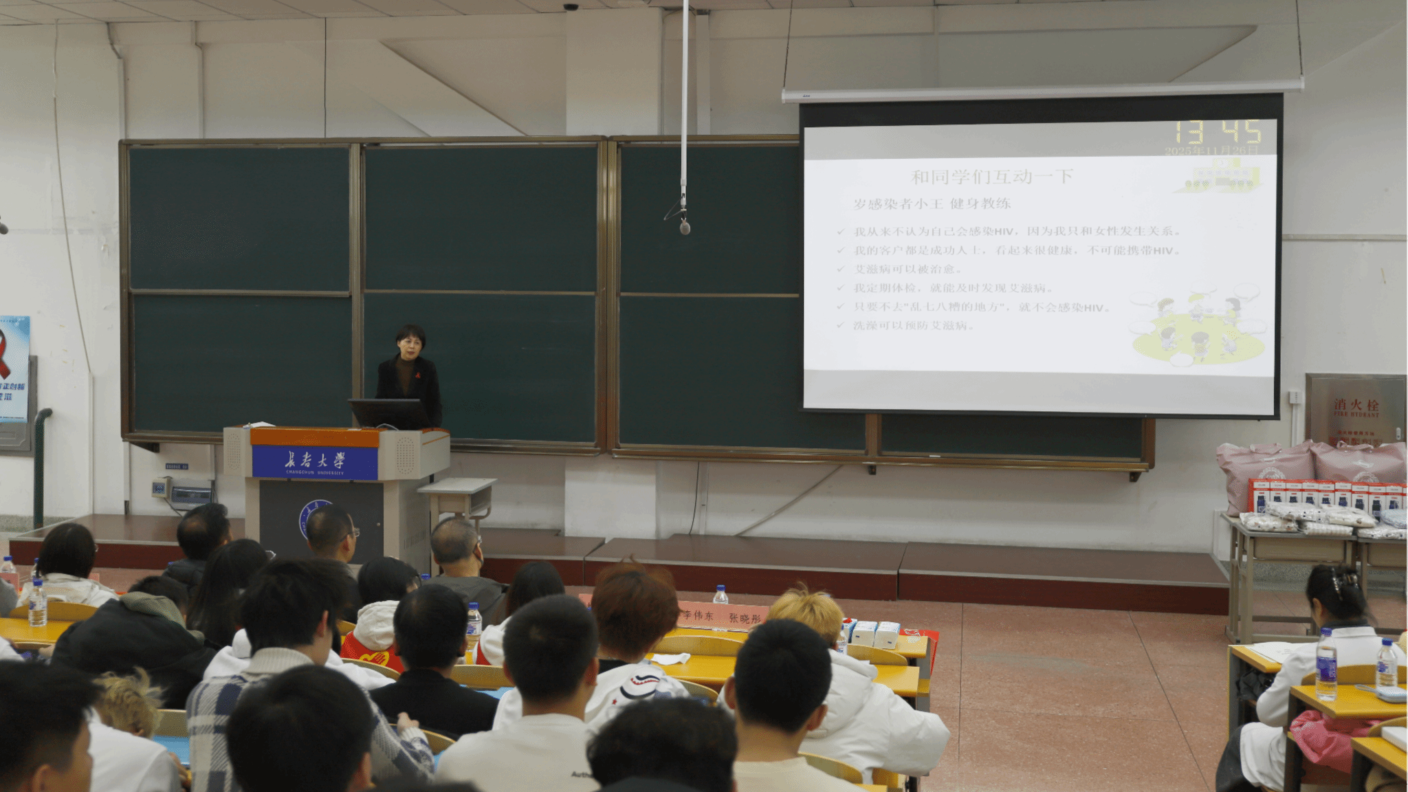 活动期间,校医院组织8场专题讲座,共有5800多名学生参加。长春市疾病预防控制中心梅淑娟教授作了题为《青年学生参与艾滋病社会共治》的专题讲座,引导大学生将健康理念转化为实际行动。长春市朝阳区疾病预防控制中心刘波教授作了题为《青春自护,知艾防艾》的专题讲座,详细阐述了艾滋病防控要坚持“预防为先”。讲座后,疾控专家和学生进行了现场互动。校医院医务人员充分发挥课堂主渠道作用,在新生健康教育课上讲授艾滋病传播方式、流行与控制、吸毒与艾滋病关系、易感染艾滋病高危行为和预防措施等知识,引导学生关注艾滋病防控。