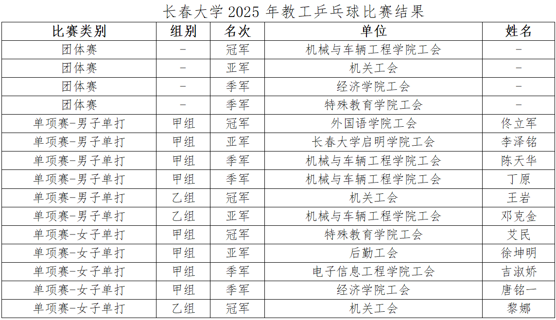 12月19日,由校工会主办,体育学院与教工乒乓球协会共同承办的2025年教工乒乓球比赛在学校训练馆举办。比赛吸引了11个基层工会的近40名教职工参加。