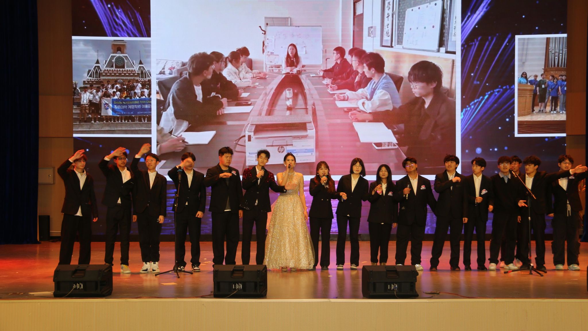 长春大学启明学院领导班子成员,学院合作院校外籍教师、辅导员、部分韩语教师及2025级全体同学参加活动。