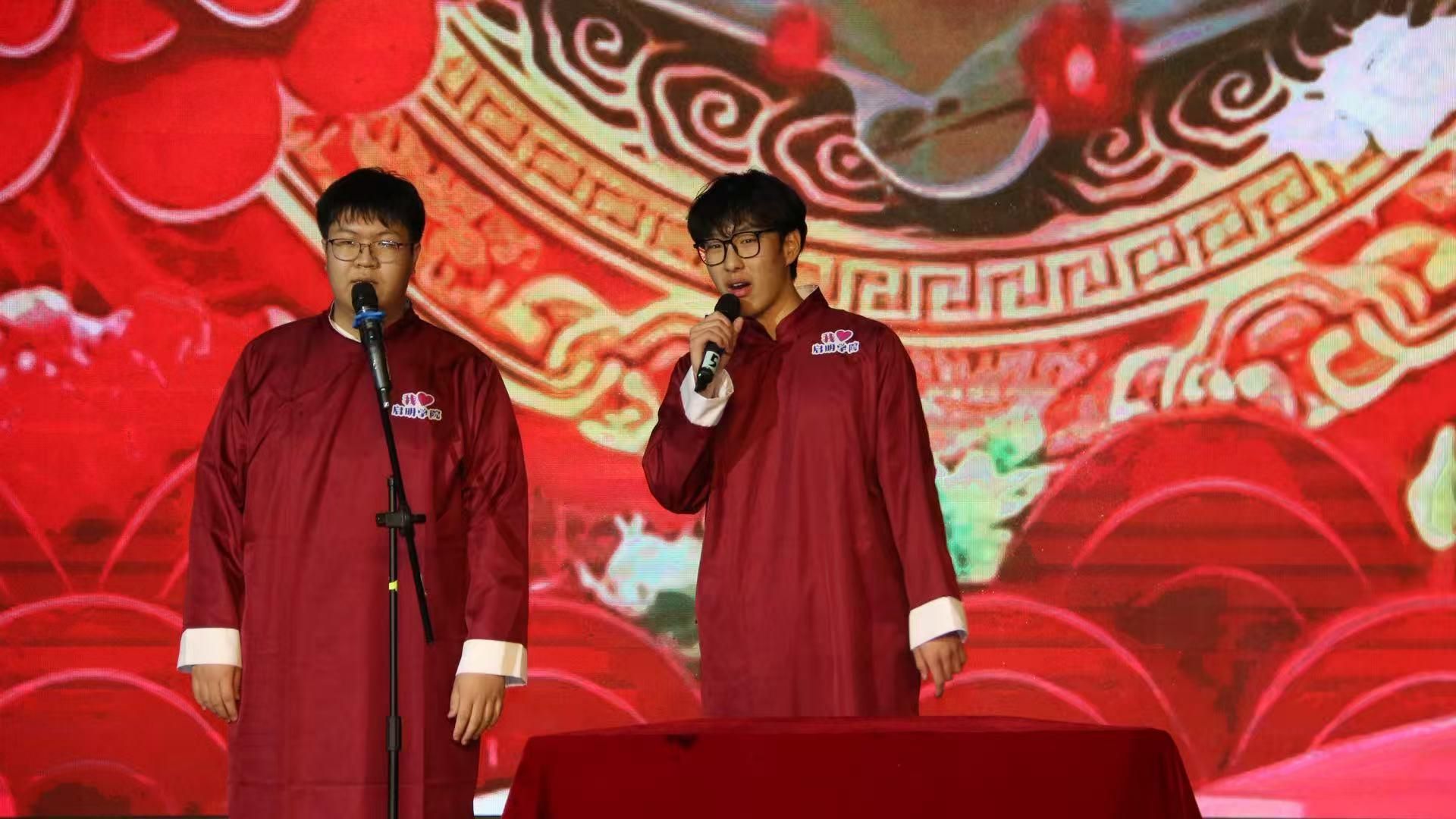 在文艺表演环节,学院师生带来了歌舞、相声、话剧等精彩节目,充分展现了启明学子昂扬向上的精神风貌与蓬勃的青春力量。节目表演过程中,配合不同主题背景的短片集中展现了学院2025年在思政教育、教学探索、科研育人、文化交流、学团工作、社会实践等方面取得的丰硕成果,以此激励全院师生接续奋斗,再创佳绩。