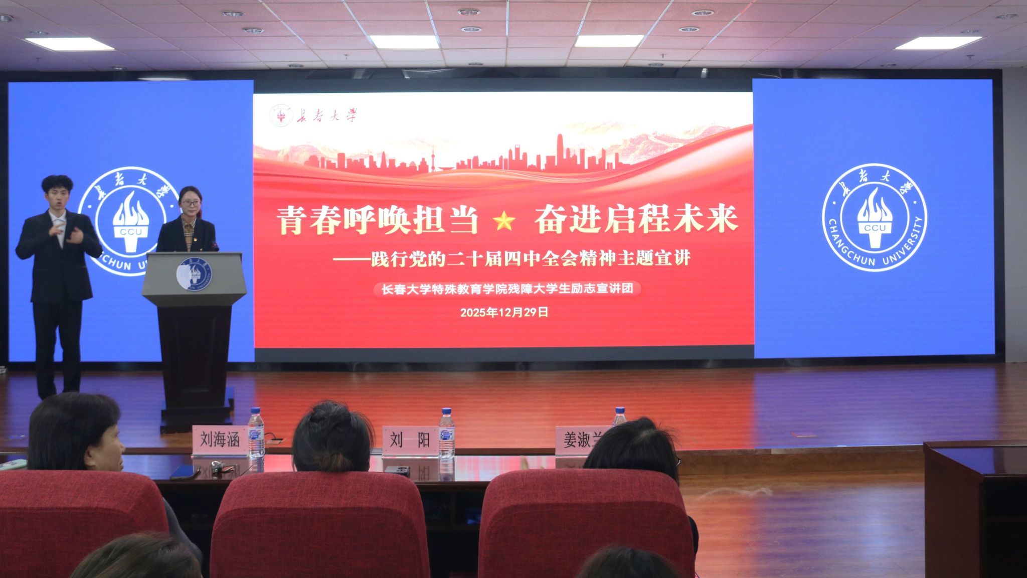 为深入学习贯彻党的二十届四中全会关于“提升特殊教育质量,保障特殊群体平等受教育权利”的重要部署,12月29日,特殊教育学院以“青春呼唤担当,奋进启程未来”为主题举办第八届残障大学生励志宣讲报告会。