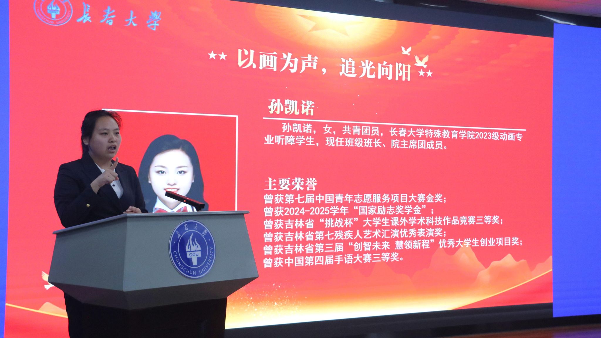 特殊教育学院学生袁浩然、史李英、张涛、孙凯诺、李佳颖、王紫菡分别分享了追逐“光音”、不负青春的成长历程。用真挚的分享、坚定的信念,展现了新时代残障青年“有理想、敢担当、能吃苦、肯奋斗”的青春风貌。