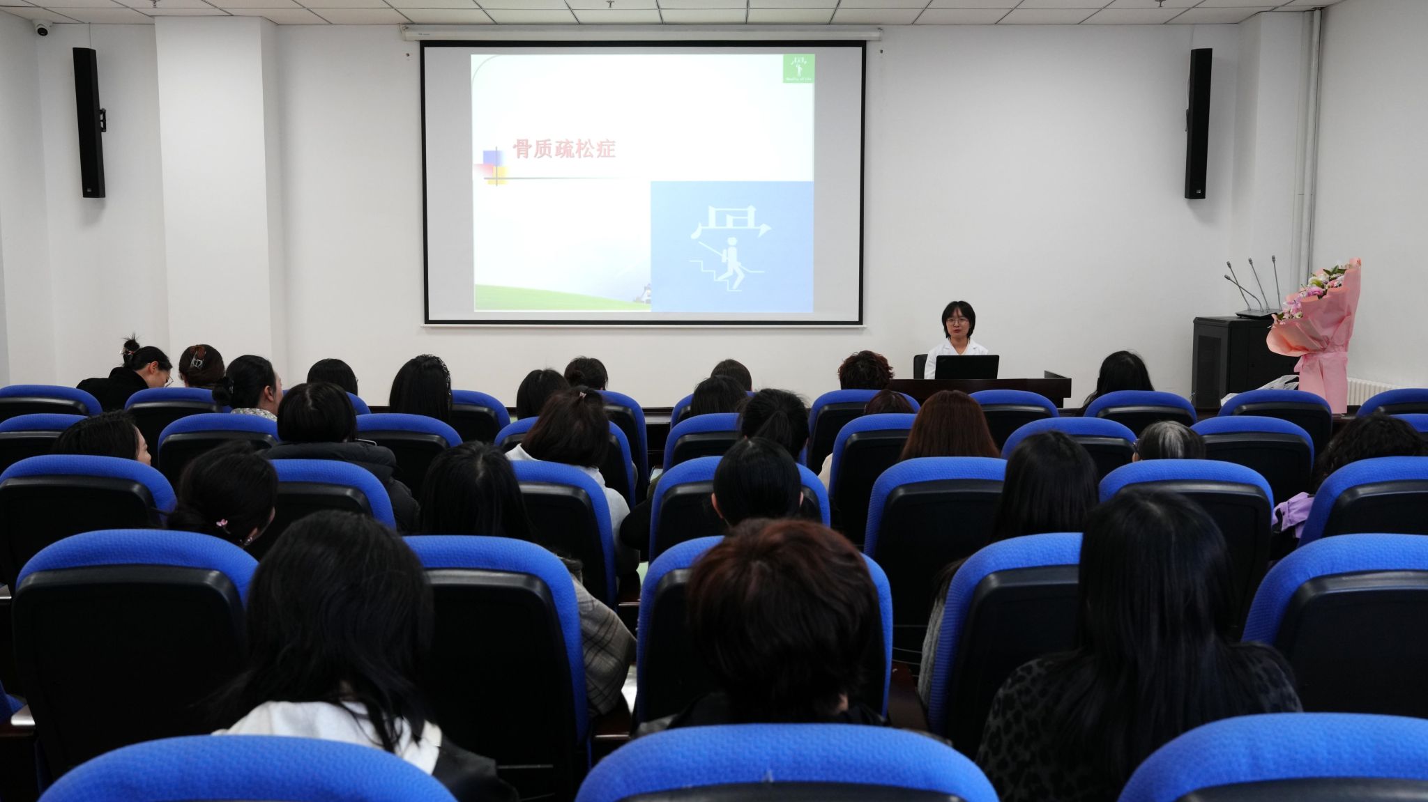 讲座特邀吉林大学第二医院骨内科医学博士朱秀洁主讲,她结合临床案例,用通俗易懂的语言重点讲解了中年群体的骨骼养护要点,骨质疏松的危害、早期信号、预防、防治等内容,强调早筛查、早干预、早管理的重要性。