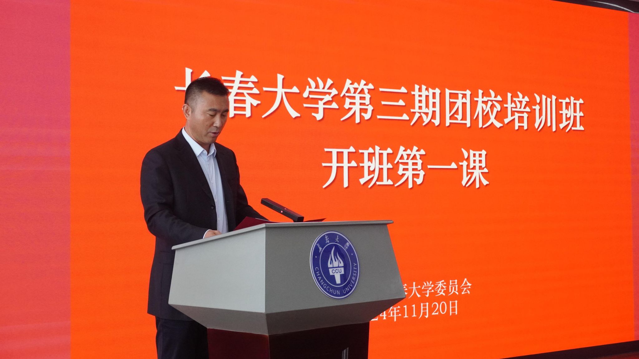 为发挥高校在学校思想政治工作中的主力军作用,提升对广大团员和青年的思政引领,进一步弘扬工匠精神,夯实劳动教育,深入推进“第二课堂”与“第一课堂”同向同行、深度融合,校团委会同教务处开展长春大学第三期团校培训班。11月20日下午,“大国工匠”、“高铁焊接大师”李万君教授作为特邀主讲嘉宾,为全校436名现场师生代表及线上3000余名学生带来了开班第一课。报告会由学校团委书记王建光主持。