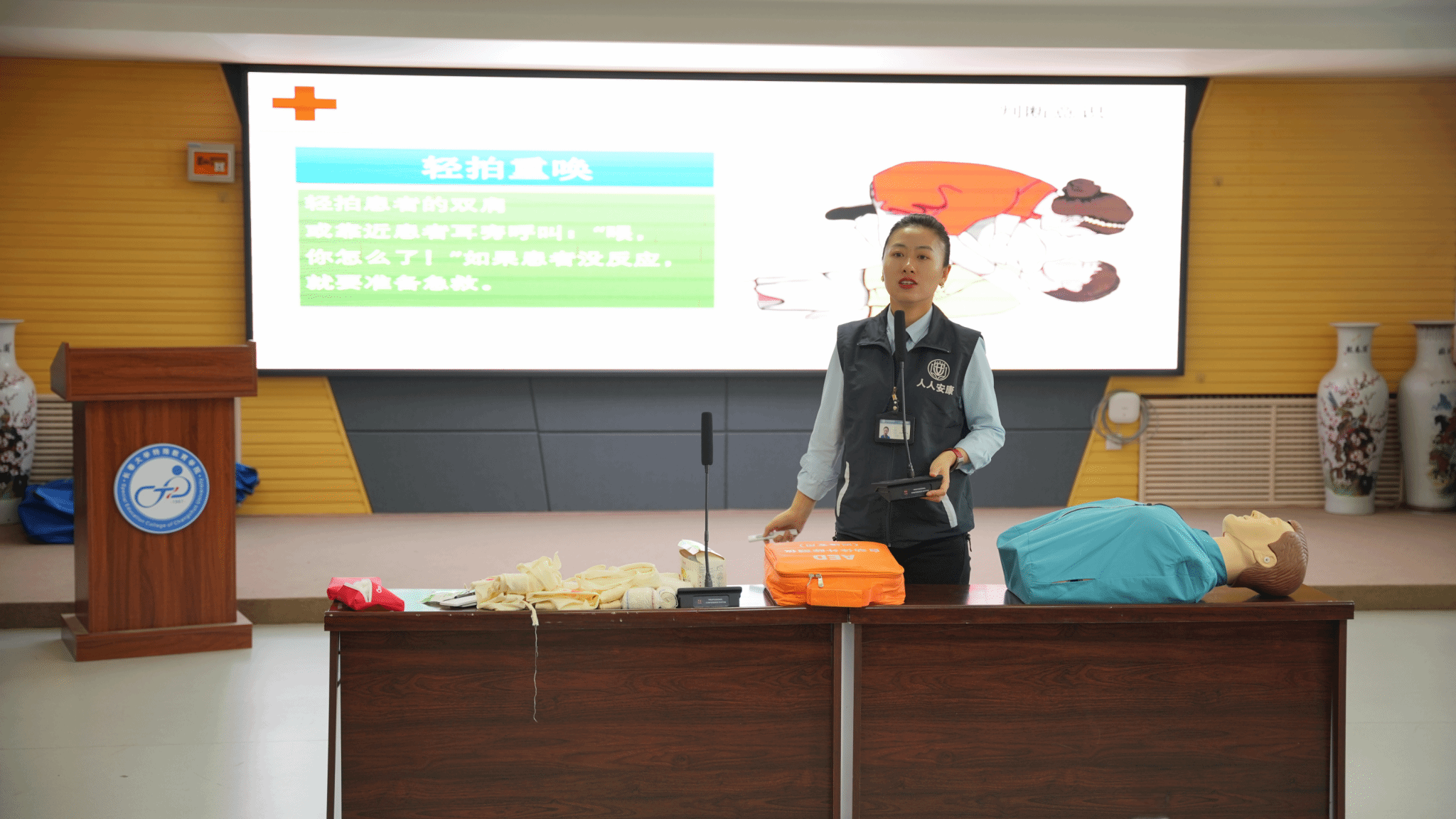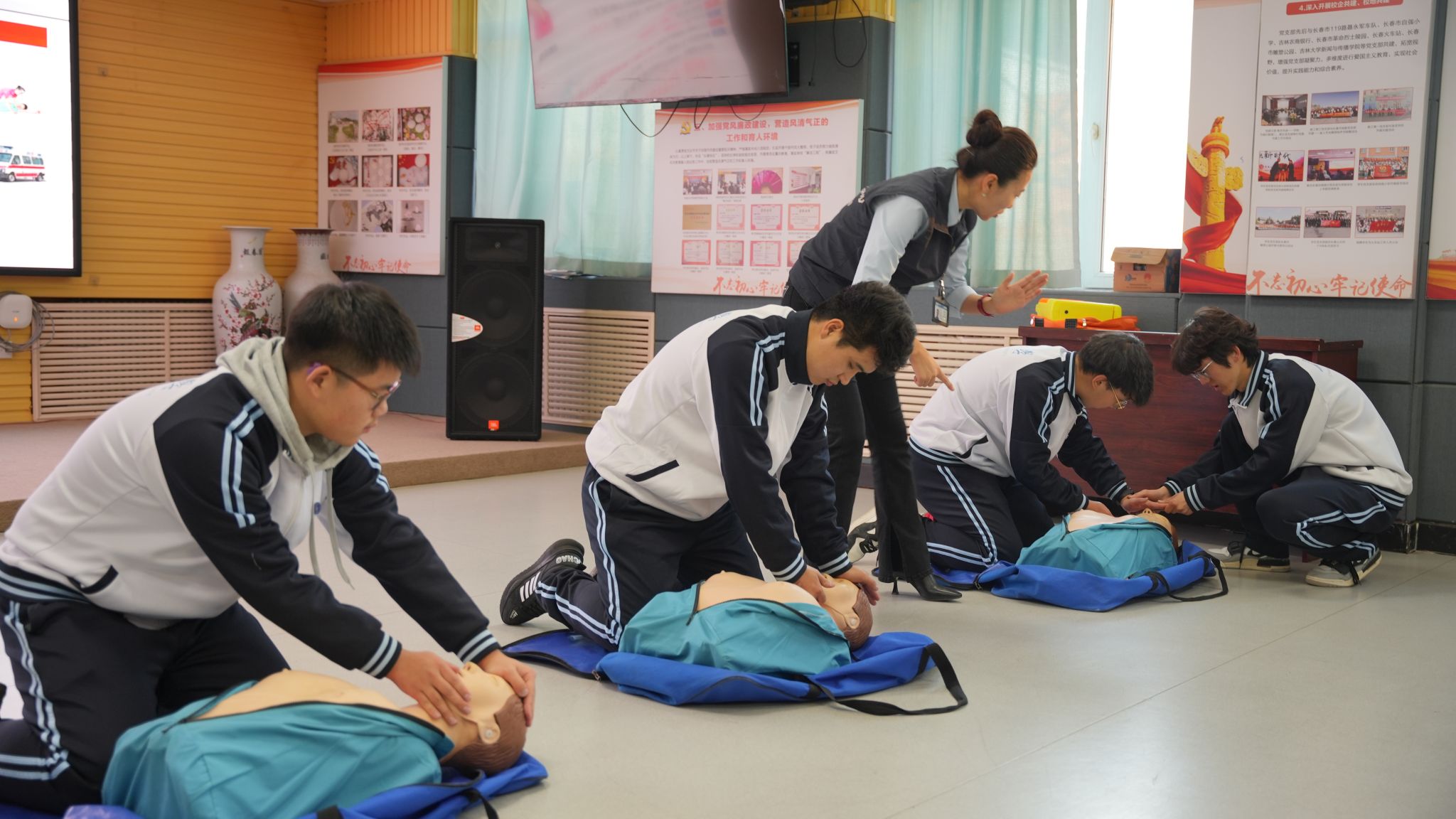 培训采用理论授课和实操练习结合的方式进行。中国安全健康教育网宣教主任马钰铭介绍了预防和应对突发公共卫生事故的科学常识,强调掌握应急救护技能的重要性,并通过专业的理论知识和典型的实际案例详细讲授了心脏骤停的概念、急救行为的重要性、基础心肺复苏术的原理及操作方法。师生通过示范操作、实地模拟的方式学习了止血包扎、心肺复苏、AED除颤仪的使用、海姆立克急救法等相关应急救护知识。师生认真学习并积极参与实操,亲身体验,反复练习,掌握急救技能。
