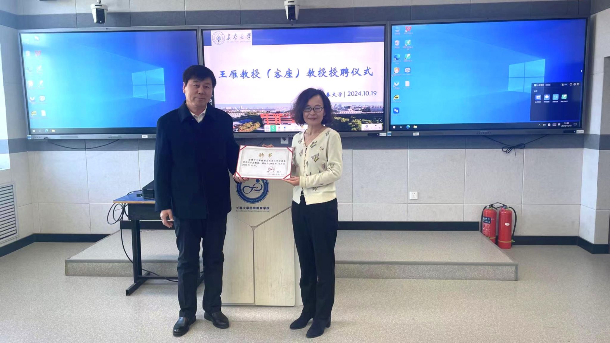 近日,北京师范大学王雁教授被我校聘为客座教授。副校长王德军为王雁颁发聘任证书。