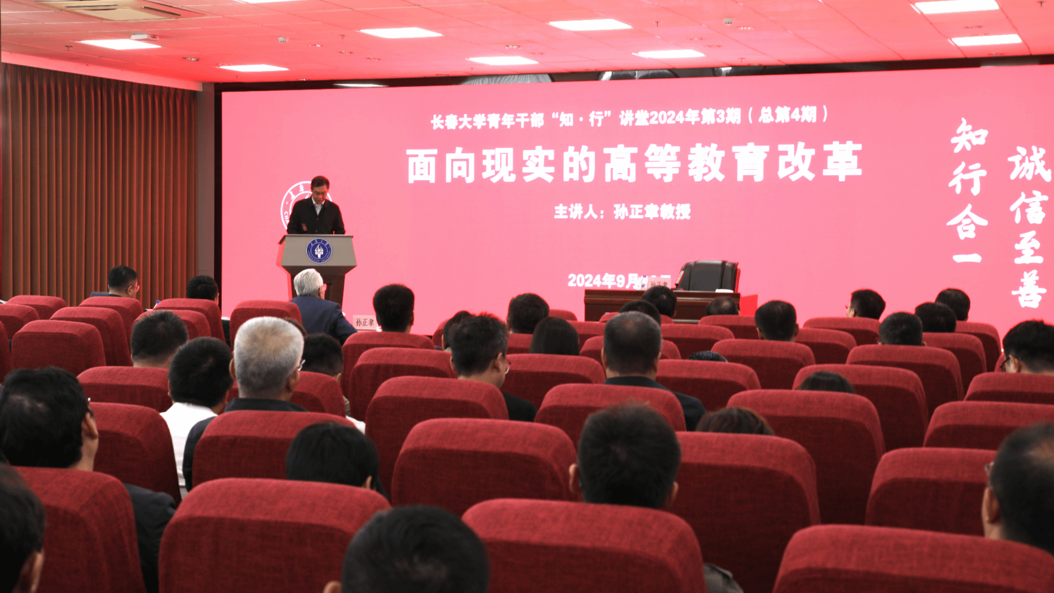 9月26日下午,学校举办2024年第3期(总第4期)青年干部“知·行”讲堂。吉林大学哲学社会科学资深教授、哲学基础理论研究中心主任孙正聿教授到校作了题为《面向现实的高等教育改革》的专题讲座。讲堂由学校党委书记孙爱军主持。