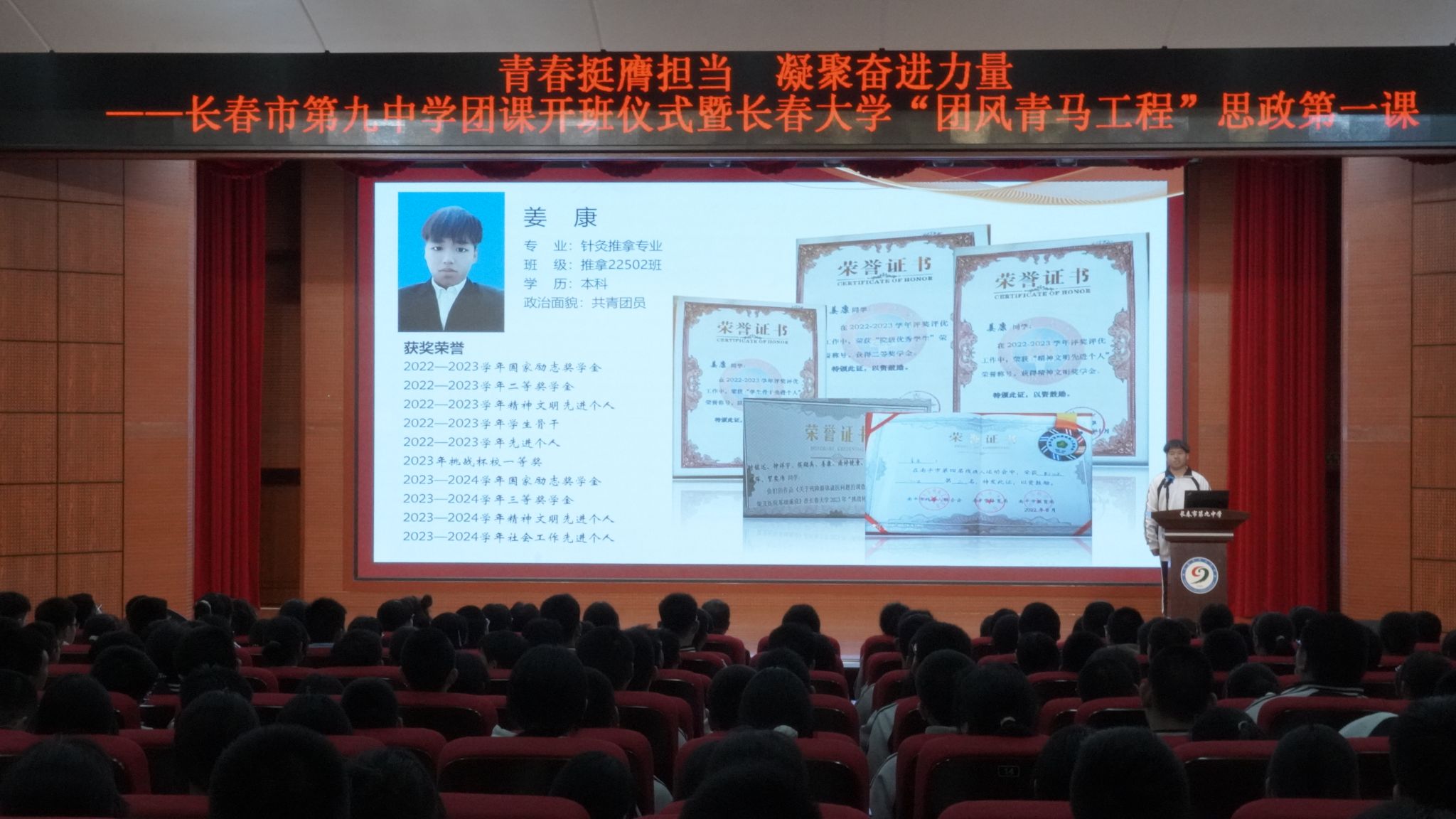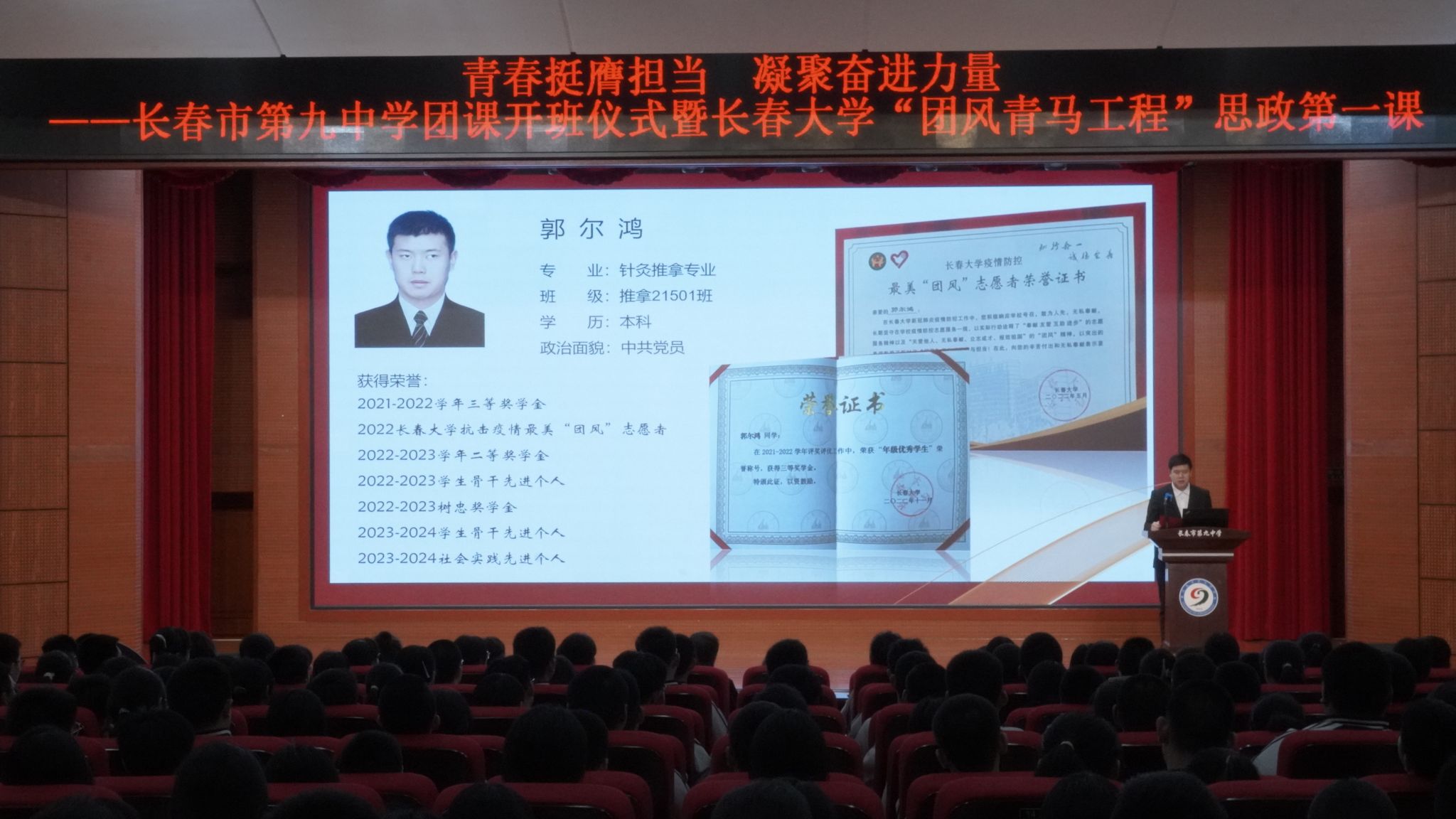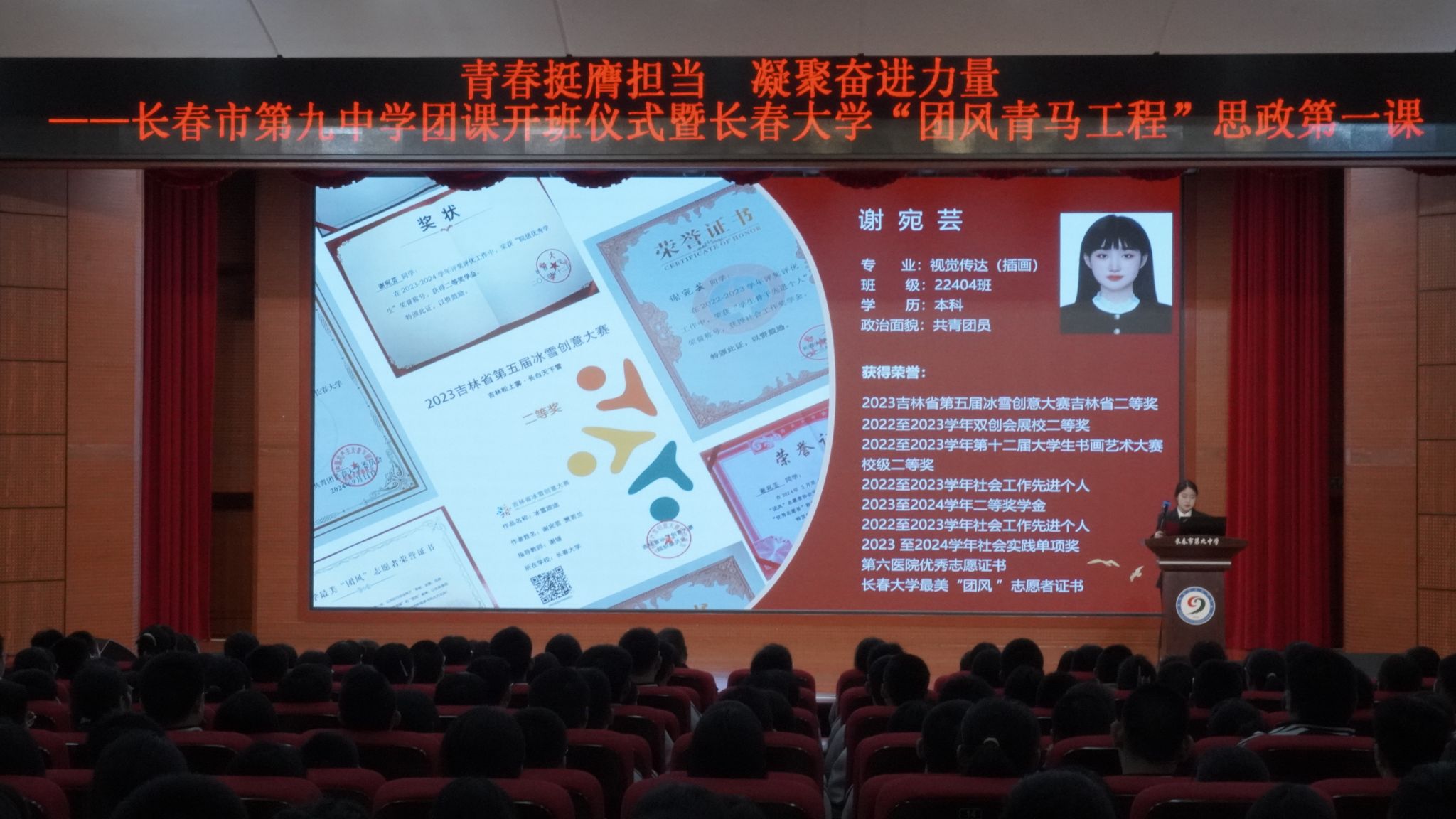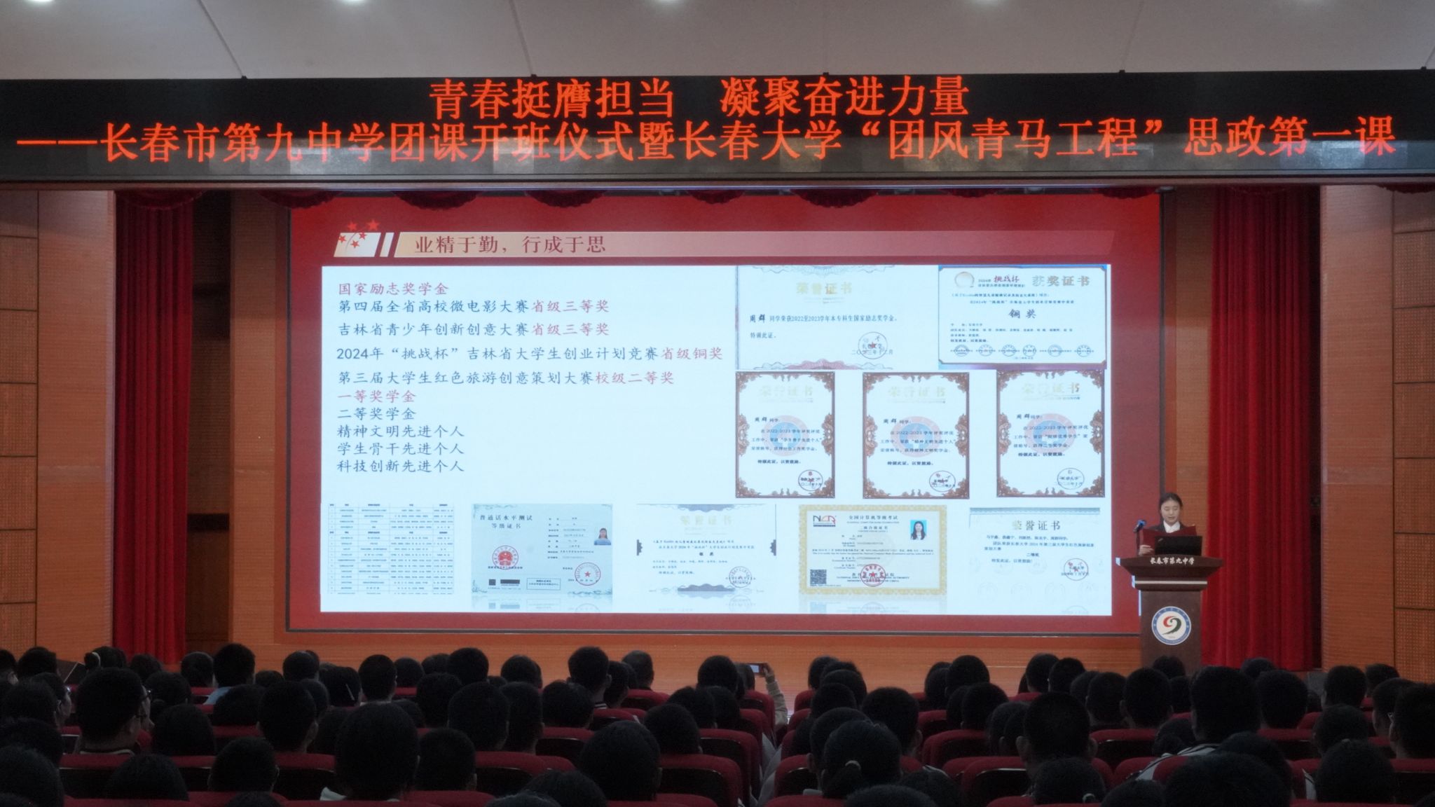 为深入贯彻落实习近平总书记关于青年工作的重要论述,进一步强化“青马工程”的政治功能,推进大中小学思政课一体化建设,我校组织“‘团风’青马工程”学员走进长春市第九中学开展励志宣讲活动。