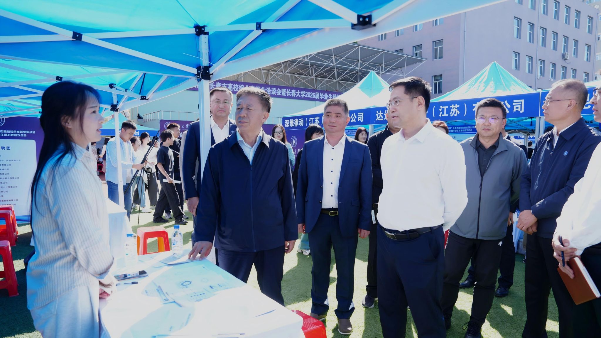 为深入贯彻党中央、国务院关于高校毕业生就业工作的决策部署,积极服务吉林高质量发展战略,推动2026届毕业生更加充分、更高质量就业,9月17日下午,学校举办“服务吉林高质量发展”长春市高校综合类就业洽谈会暨长春大学2026届毕业生首场秋季校园双选会。吉林省教育厅一级巡视员刘学军,学校党委书记所永吉、党委副书记王剑飞,省教育厅高校学生处处长宁宝忠,吉林省高等学校毕业生就业指导中心主任申守权、副主任宋姣、市场开发部部长王颖,吉林省大学生就业创业协会秘书长范志辉出席活动。