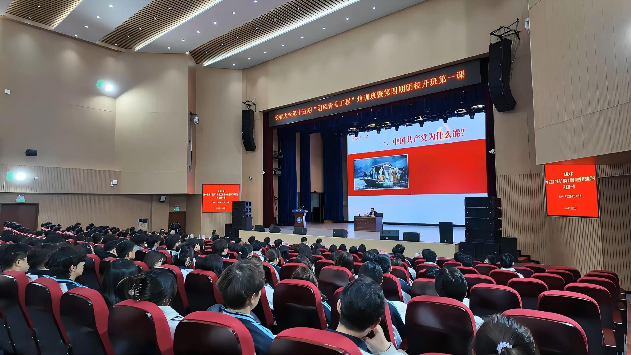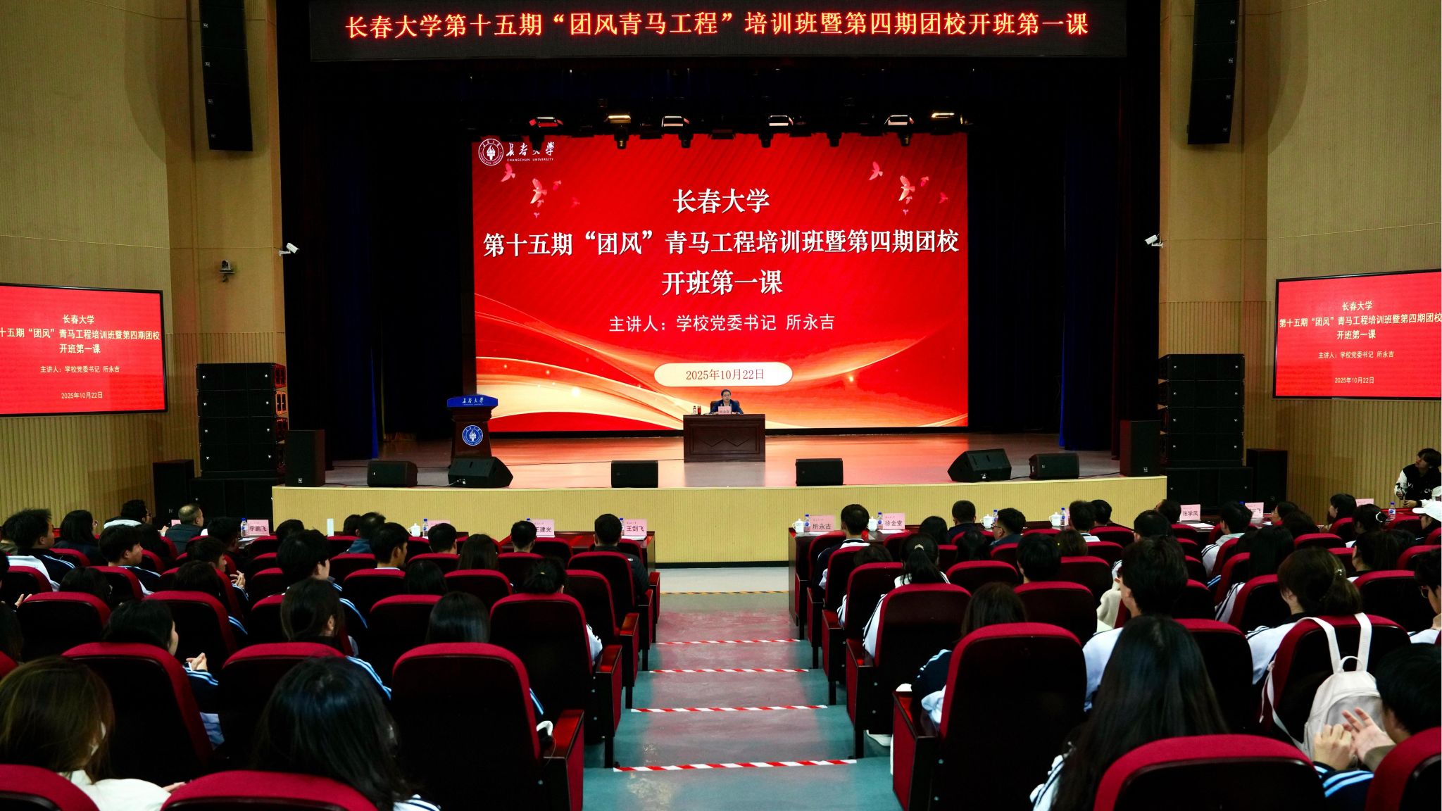 10月22日,长春大学第十五期“团风青马工程”培训班暨第四期团校开班第一课在学校图书馆报告厅举行。学校党委书记所永吉以《明理・增信・笃行 在新征程上为实现民族复兴伟业贡献青春力量》为题,为青马工程学员、团校学员及学生代表讲授了一堂深刻而生动的思政课。