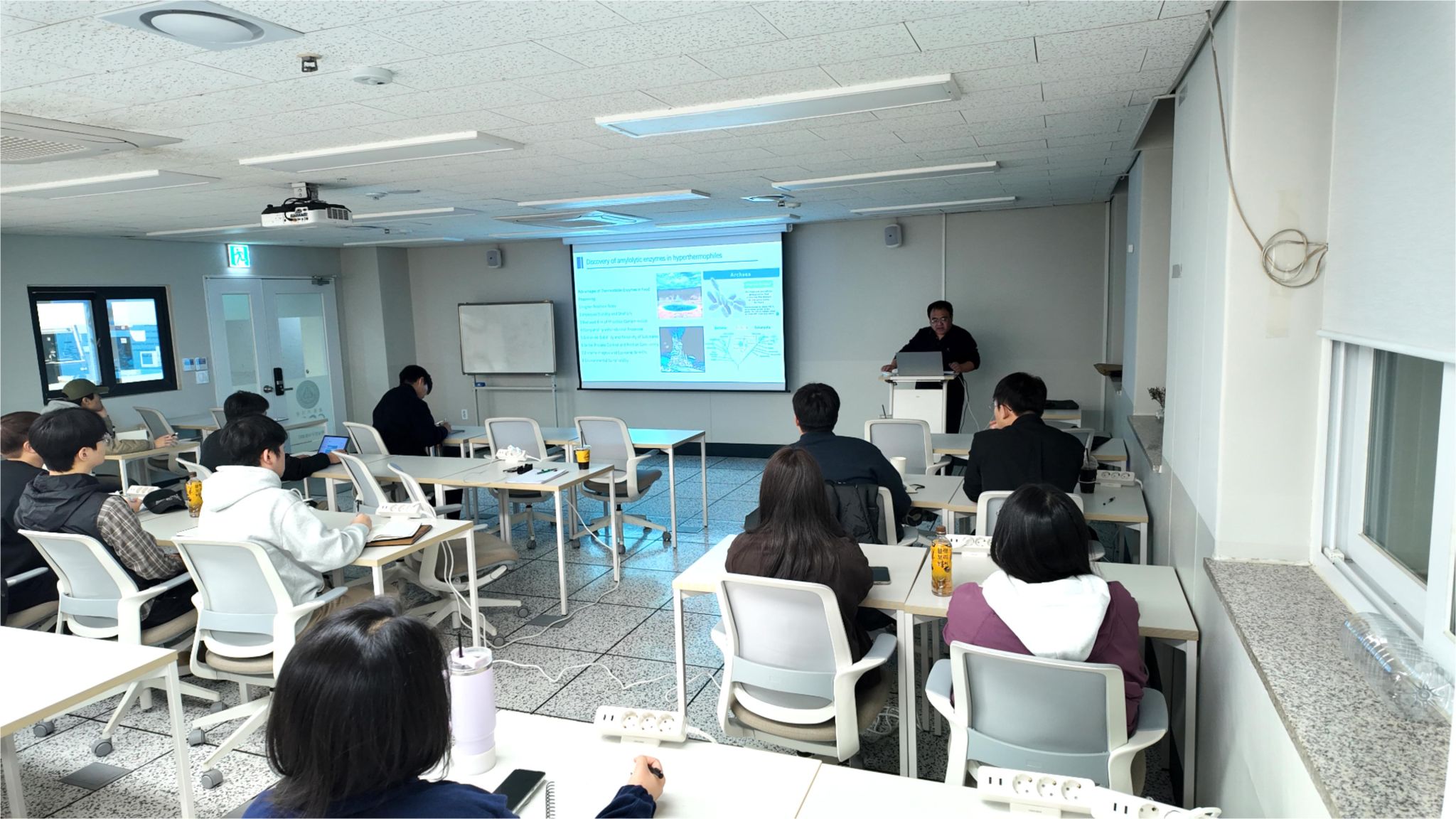 会议期间,李丹教授应邀到韩国世宗大学食品科学与生物技术系和碳水化合物生物产品研究中心作了题为《Hyperthermophilic archaeal cyclodextrin-hydrolysing enzymes: Activities, structures, and applications》的学术报告,系统介绍了我校在超嗜热酶制剂的发掘、活性、结构和食品应用方面的研究进展,并与韩国教授和研究生进行了深入探讨。李丹教授还与韩国翰林大学食品与营养系教授Jae-Hoon Shim、韩国江陵原州国立大学海洋食品工程系教授Sung-Hoon Park,针对双方感兴趣的学术领域展开了探讨,并参观了实验室。