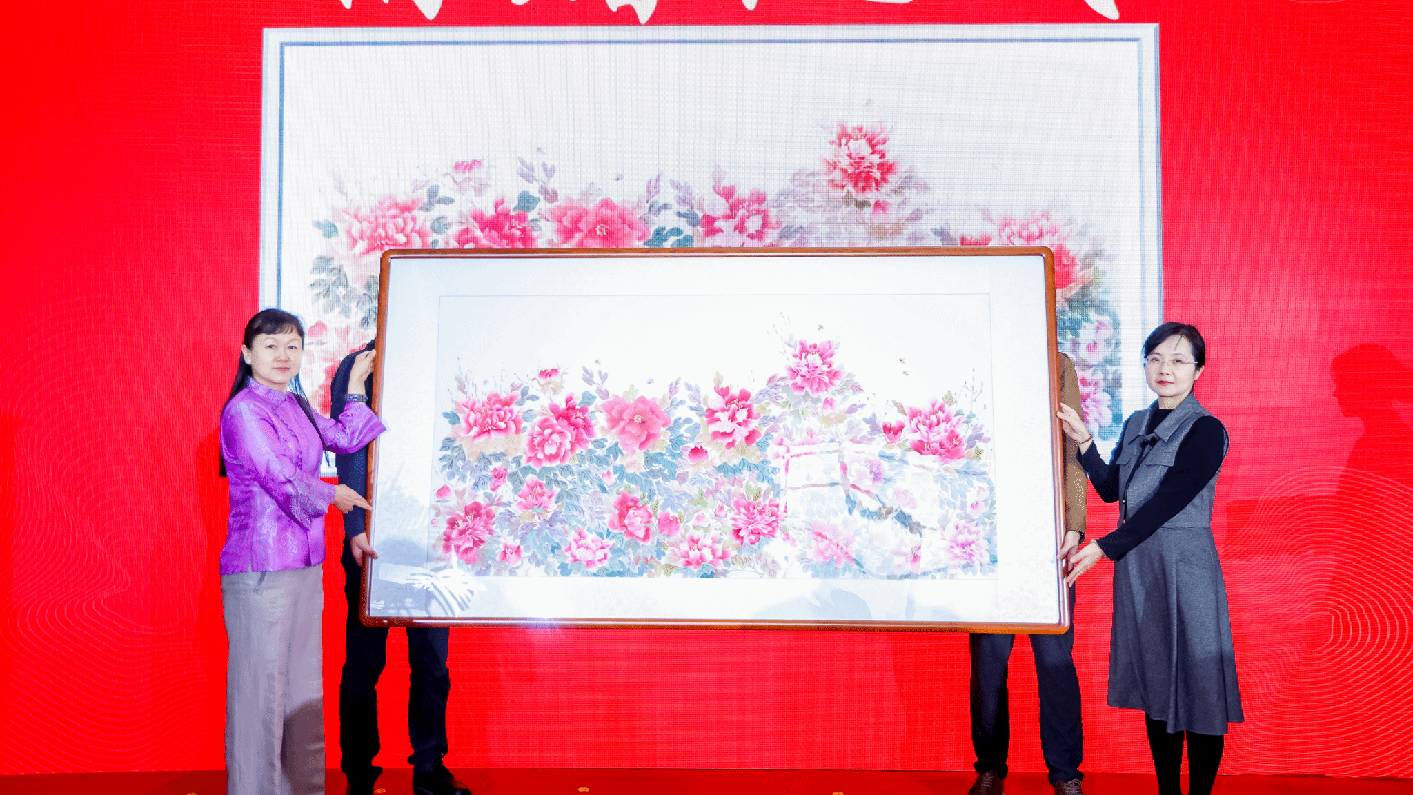 张莉代表参展艺术家邵亚芳向中国妇女儿童博物馆捐赠中国画作品《牡丹图二零二四》,中国妇女儿童博物馆副馆长李燕凌为艺术家颁发捐赠证书。