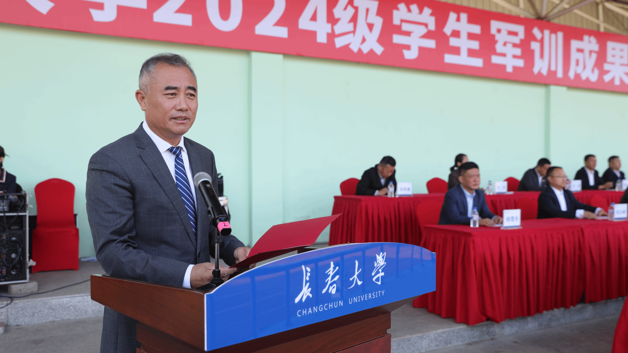 王剑飞作总结讲话,代表学校向一直奋战在军训第一线的全体教官、新生辅导员、学团干部、学生骨干以及参训全体同学表示最亲切的慰问,向刻苦训练并取得优异成绩的先进单位和个人表示热烈的祝贺。希望2024级学生珍惜军训过程中的点点滴滴,在今后的学习生活中,燃理想之灯,植家国情怀,把军训所学、所知、所感,与“知行合一、诚信至善”的校训结合起来,与“关爱他人、无私奉献、立志成才、报效祖国”的“团风”精神结合起来,在长大校园里成为有理想、敢担当、能吃苦、肯奋斗的有为青年,让青春在长春大学这片热土上焕发出更加绚丽的光彩。