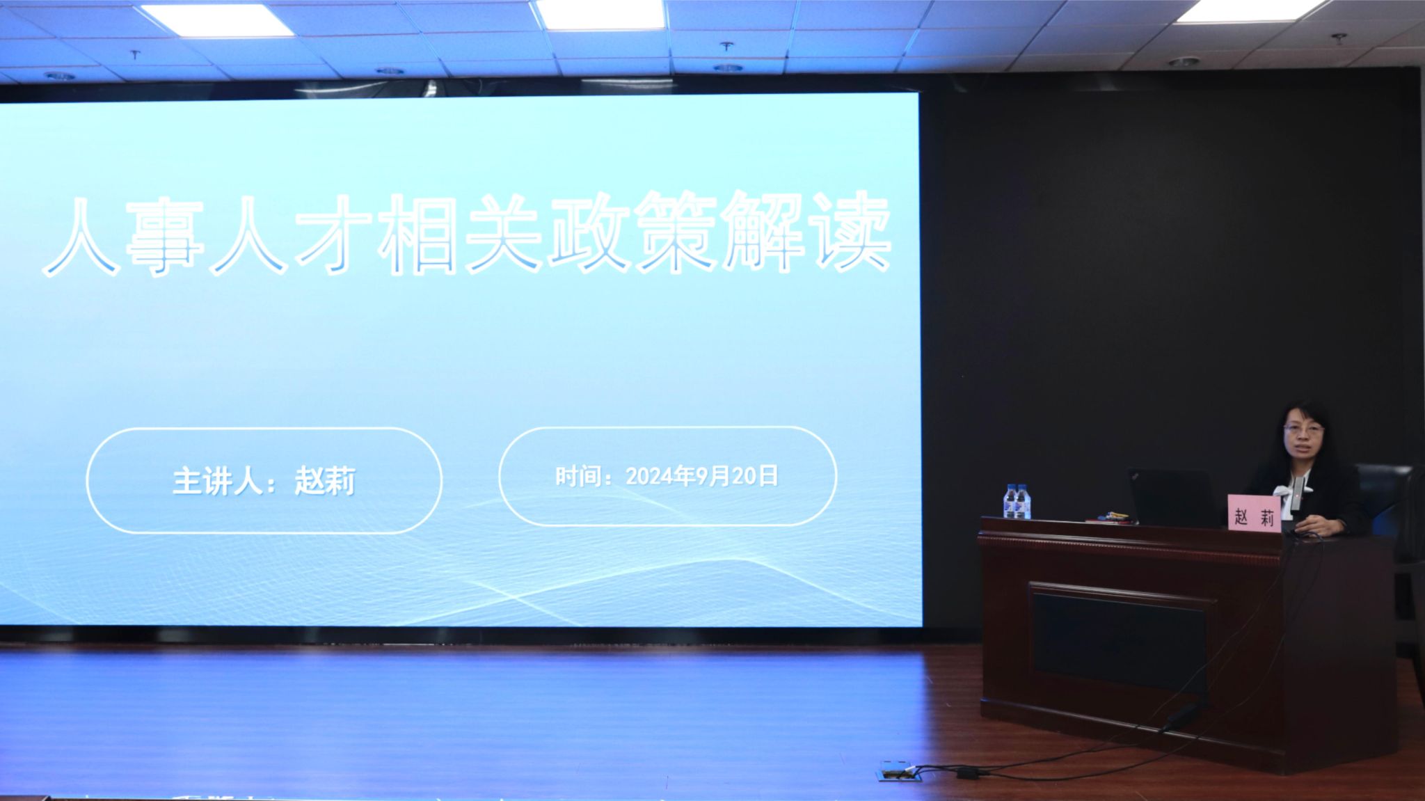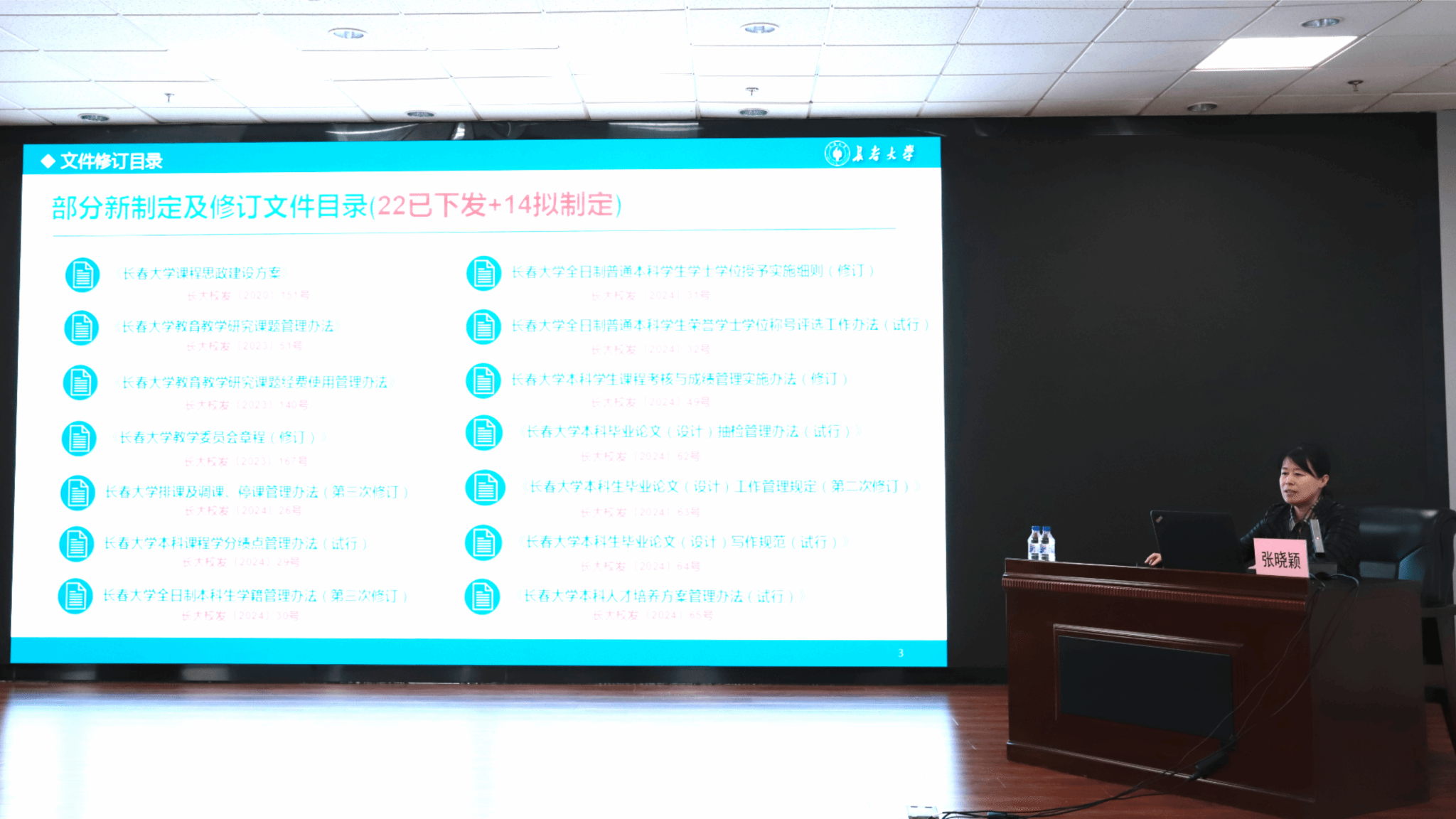 制度解读环节,人事处处长赵莉、教务处处长张晓颖、研究生院院长李萌、科研处处长李念峰、计划财务处处长许敏分别就本部门近期制定修订的政策制度进行了详细解读。