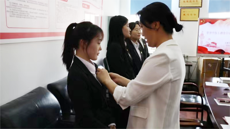 6月13日,管理学院举行为新党员佩戴党徽仪式。王丹凤和学院党委副书记刘海春为新党员佩戴党徽,并希望新党员发挥党员先锋模范作用,赓续共产党人的精神血脉,汇聚起踔厉奋发的精神力量。